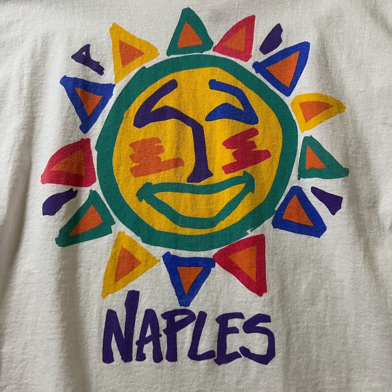 90s USA シングルステッチ ダメージ 太陽 Tシャツ ホワイト L 古着