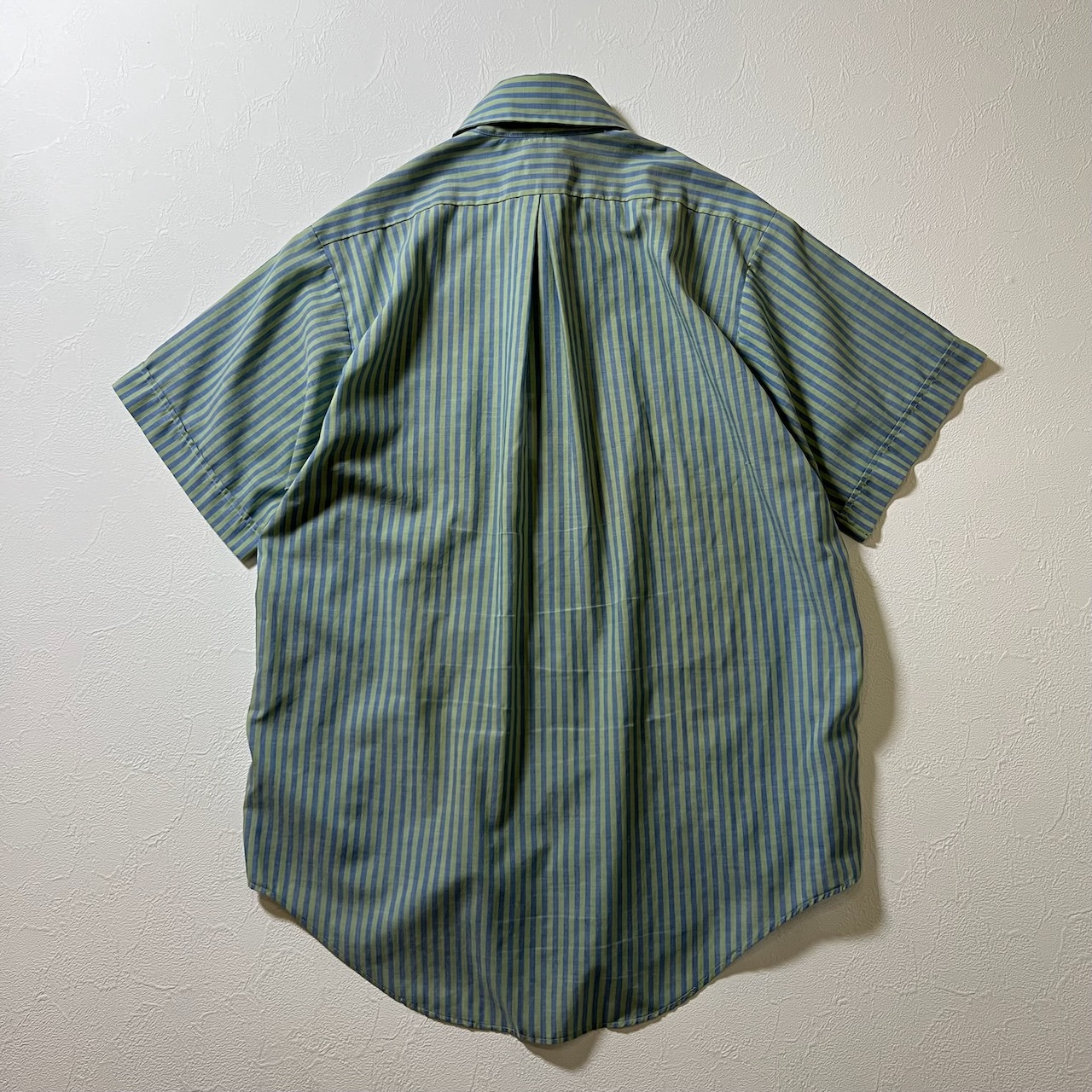 60s Gimbels Own Parkleigh 襟芯 パーマネントプレス ストライプ 半袖シャツ グリーン ブルー 古着