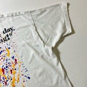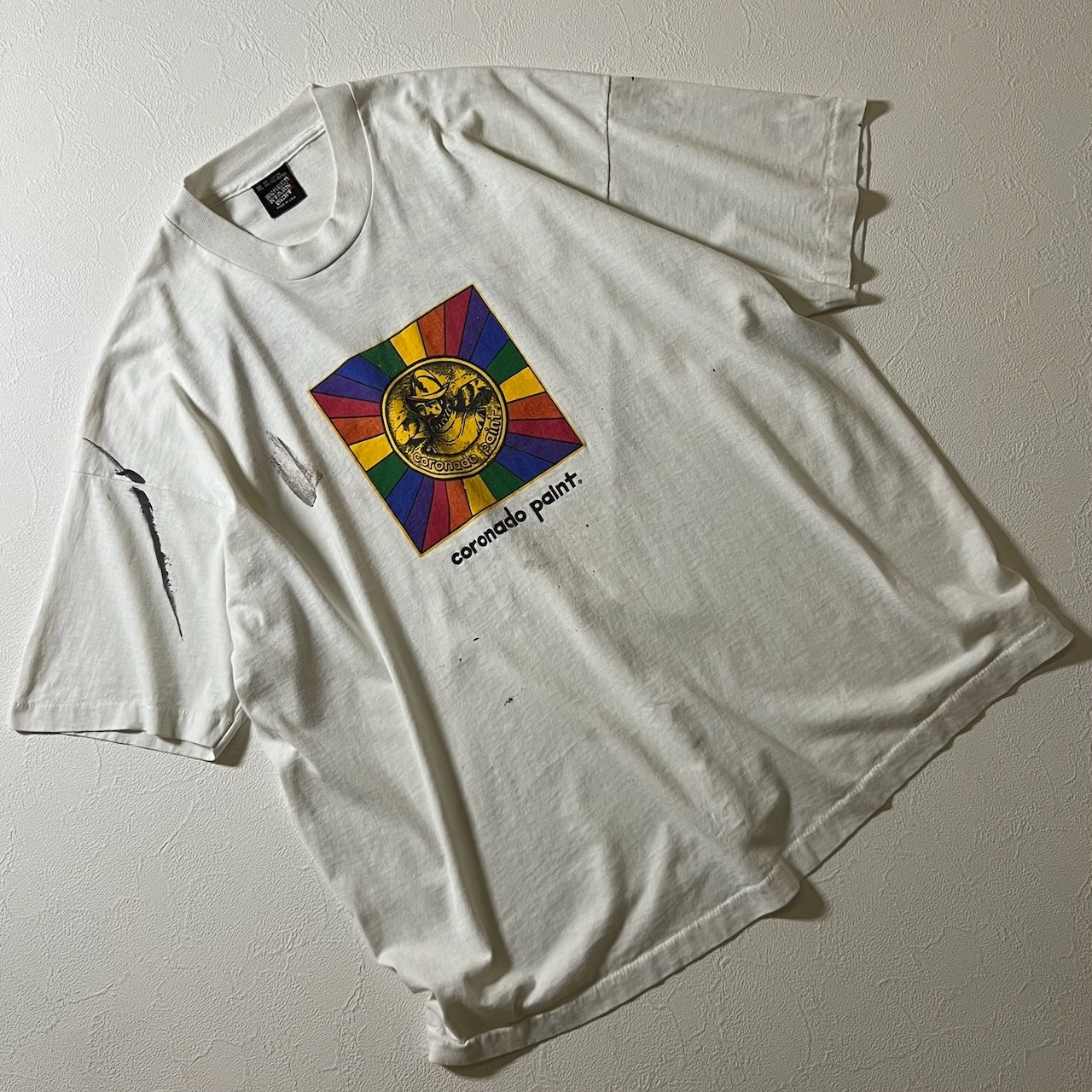 カラフルでペンキが飛び散ったプリントデザインなのは、アメリカのペイント会社のTシャツだから。