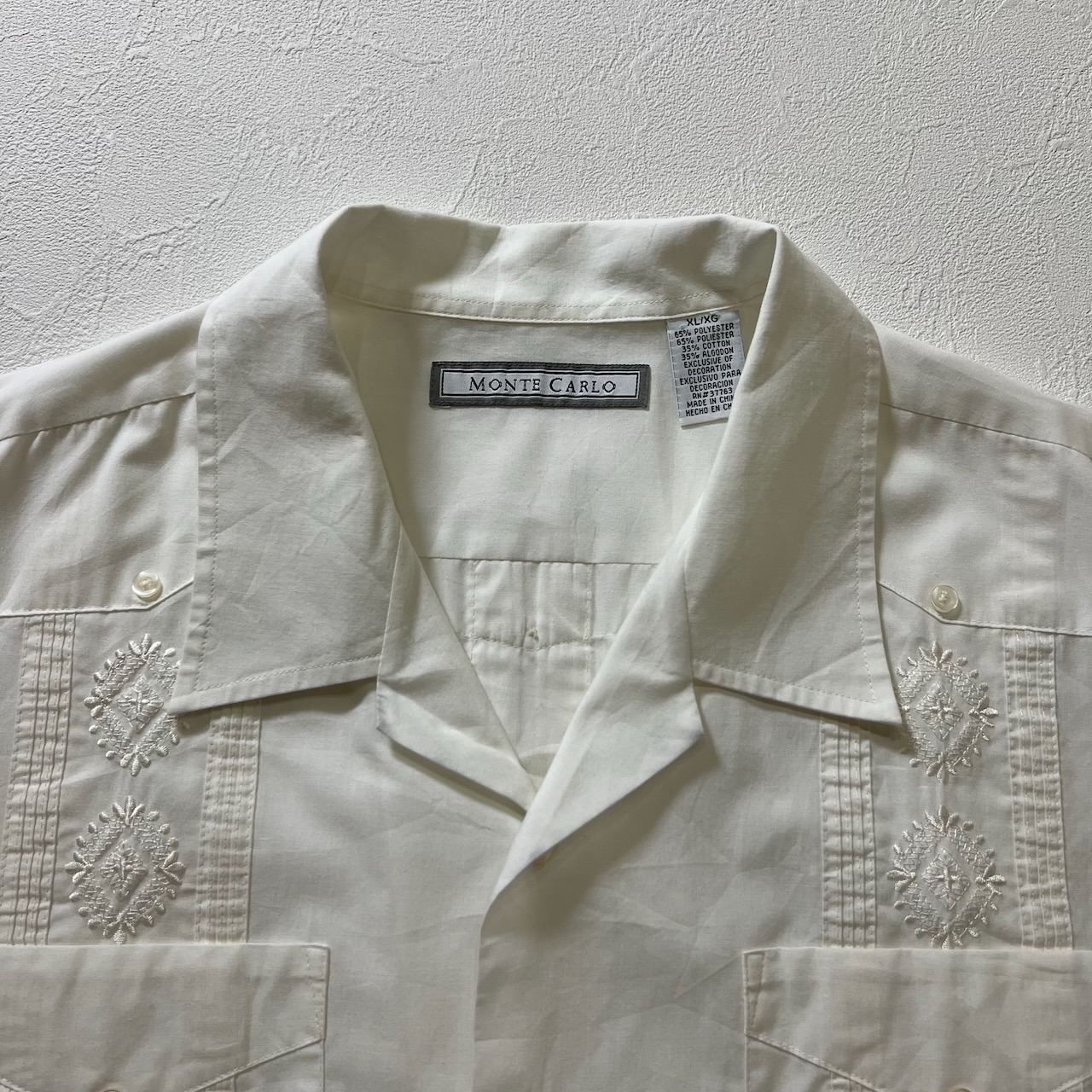 開襟 オープンカラー 刺繍 キューバシャツ ホワイト XL 古着