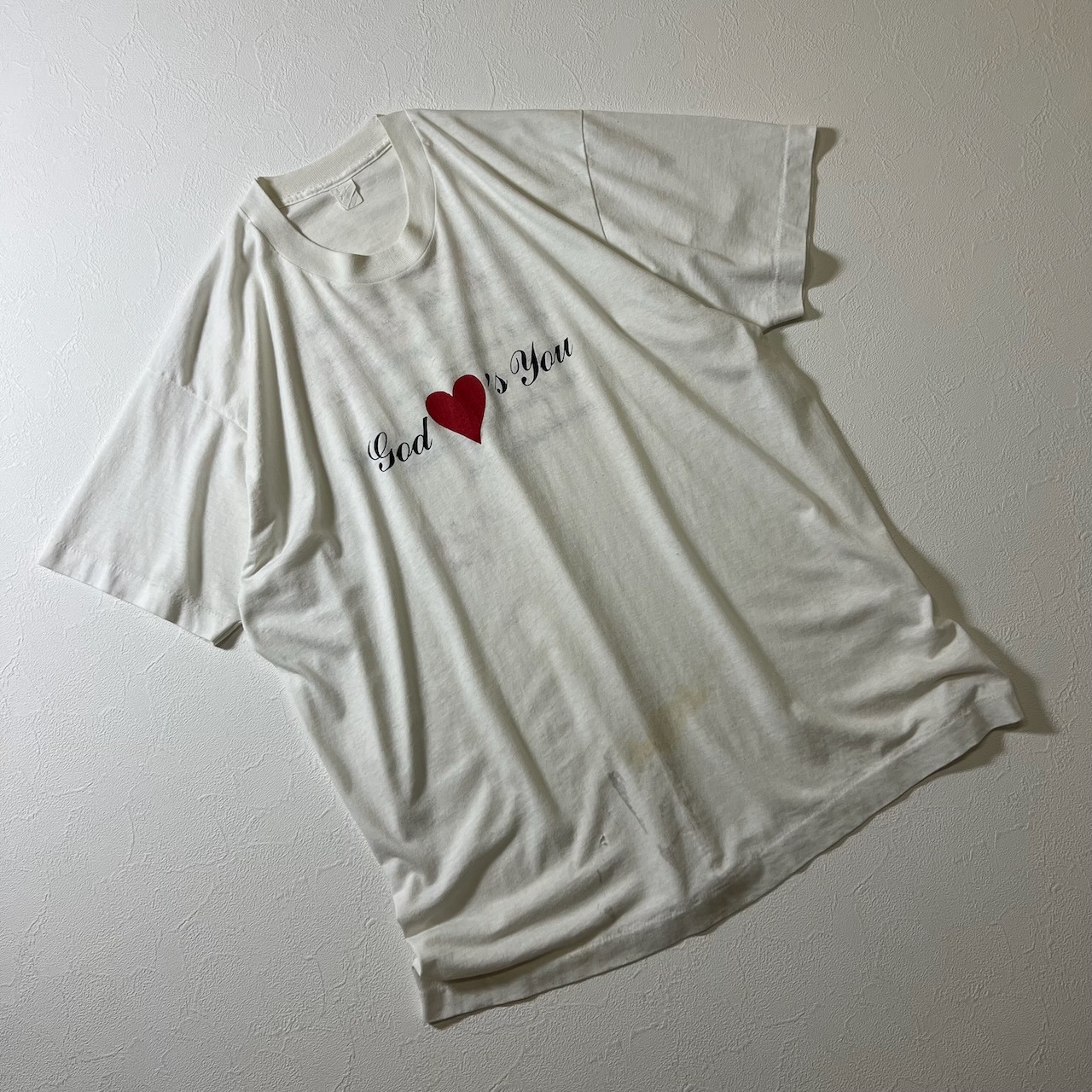 80s シングルステッチ メッセージ 雰囲気系 Tシャツ ホワイト 古着