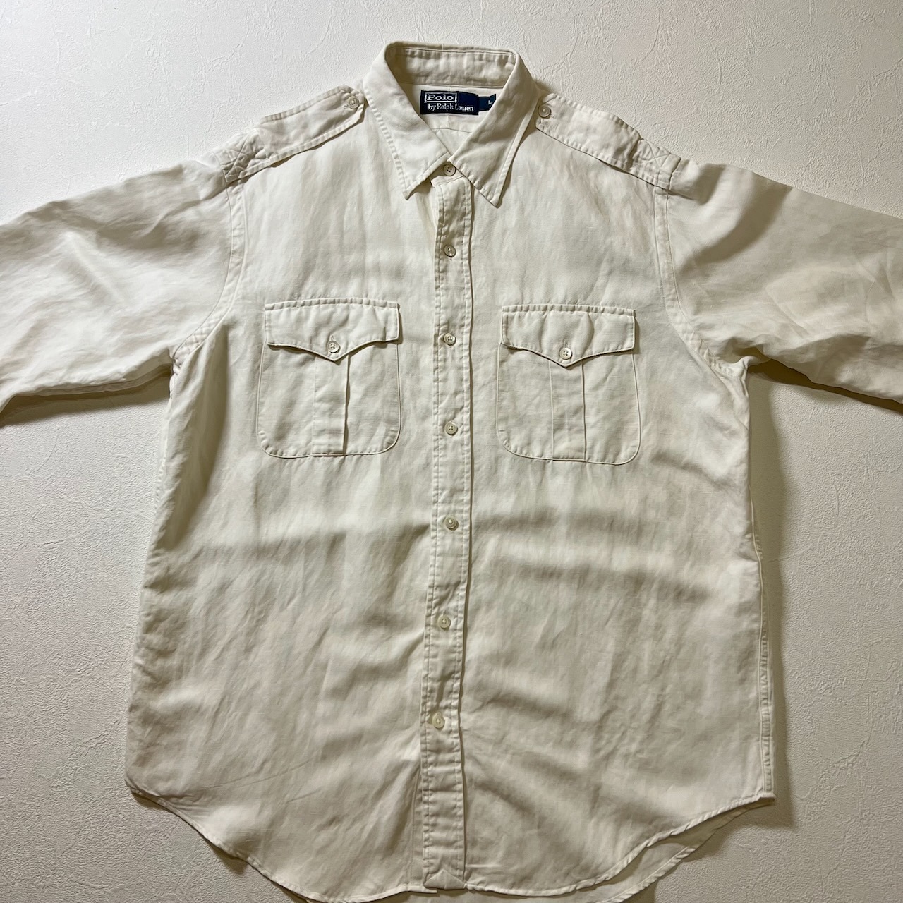 Ralph Lauren オフィサーシャツ シルクリネン エポレット 長袖シャツ ラルフローレン ホワイト L 古着
