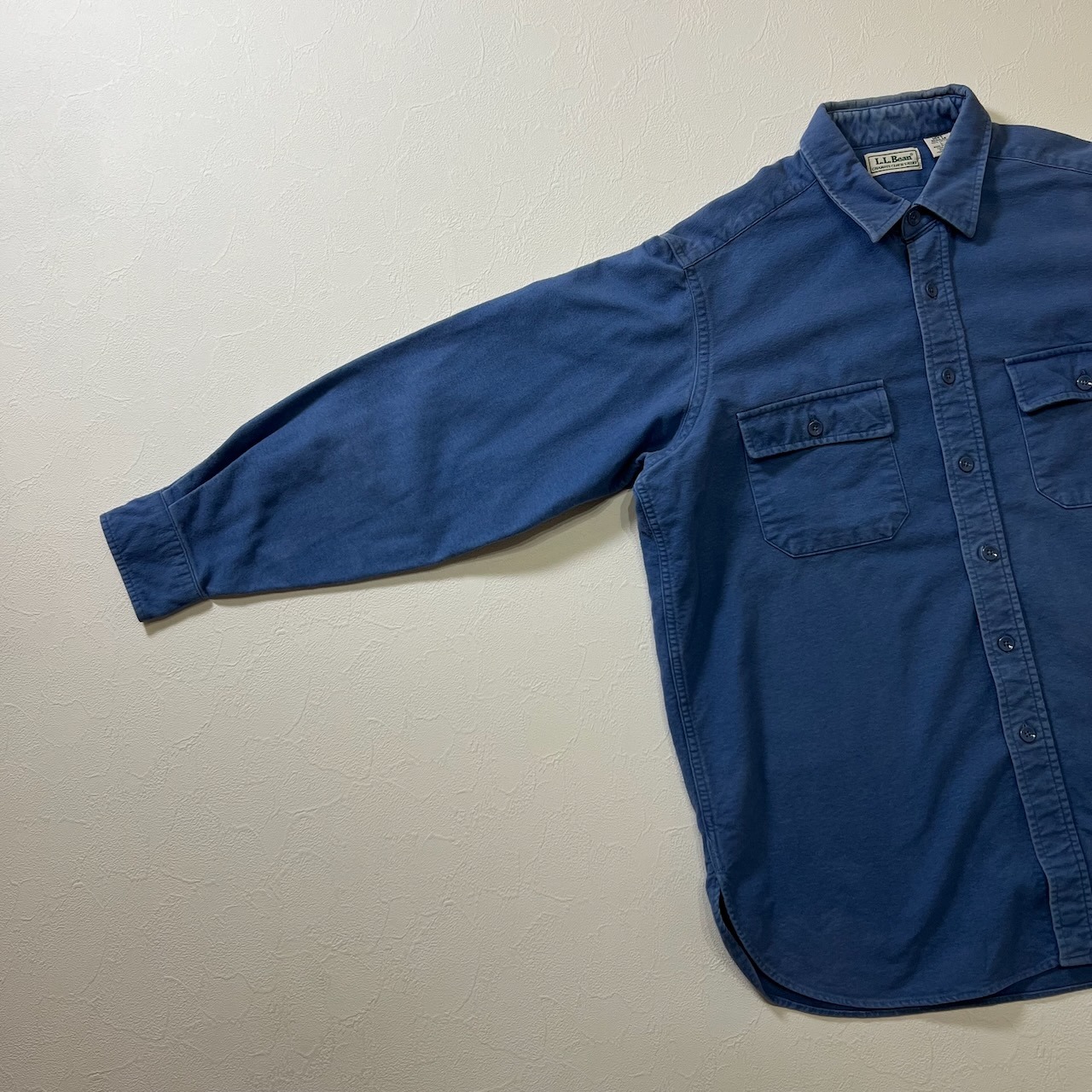 80s USA L.L.Bean シャモアクロス 長袖シャツ エルエルビーン ブルー L 古着