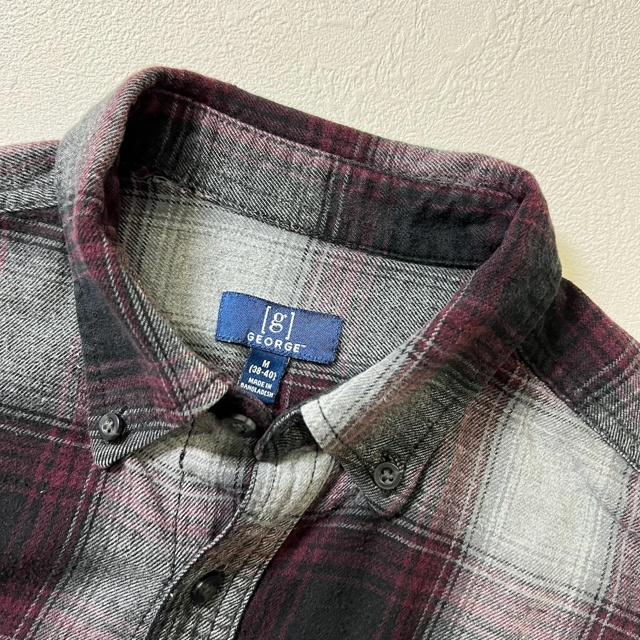 GEORGE ライトネル オンブレチェック 長袖シャツ ボルドー ブラック M 古着