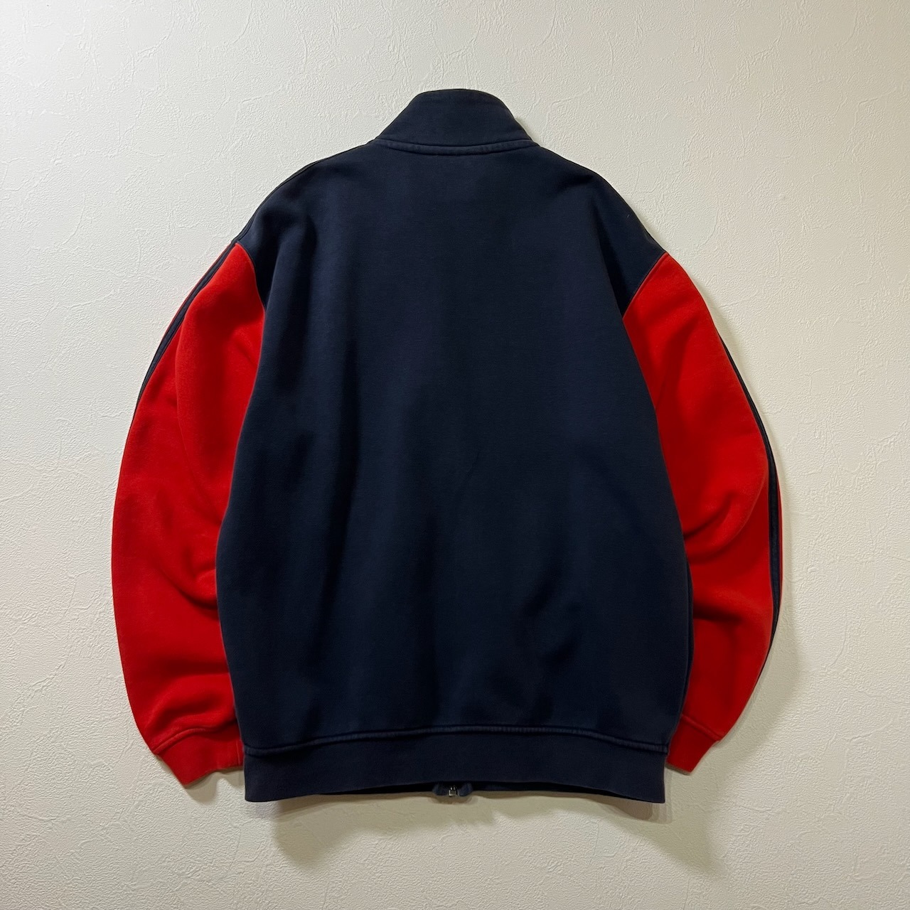 adidas フェード トレフォイル スリーストライプス トラックジャケット ジップスウェット アディダス ネイビー レッド M 古着