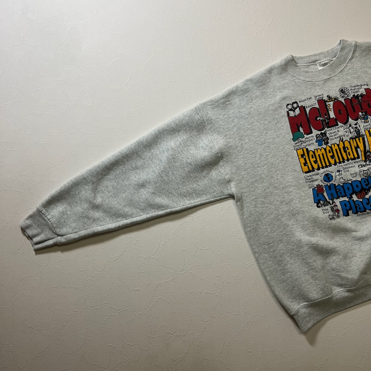 90s USA 両面プリント スウェット プルオーバー 霜降りグレー XXL 古着