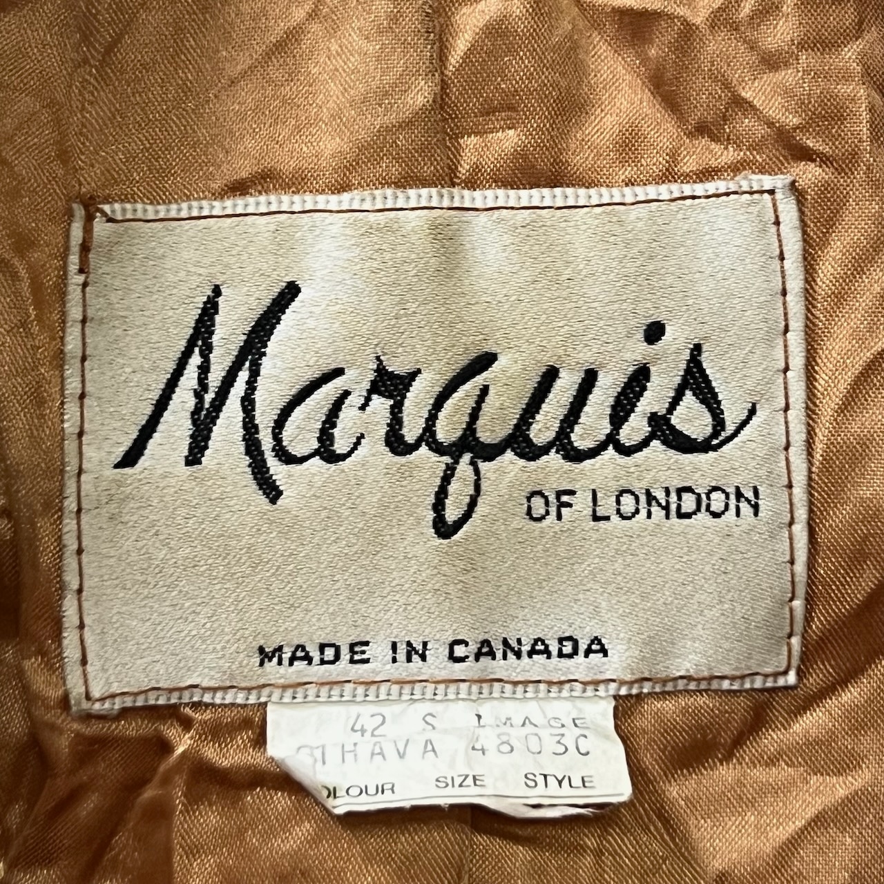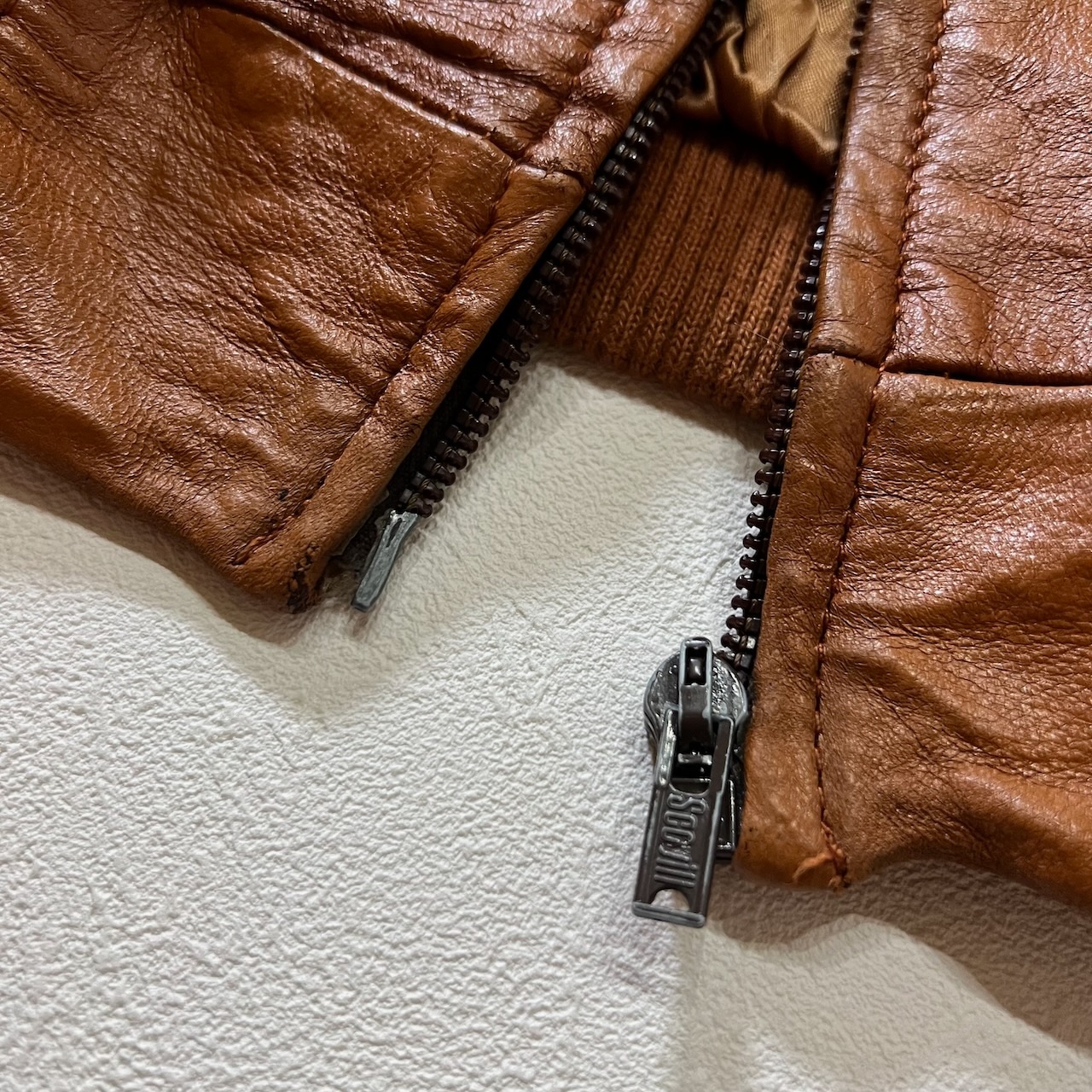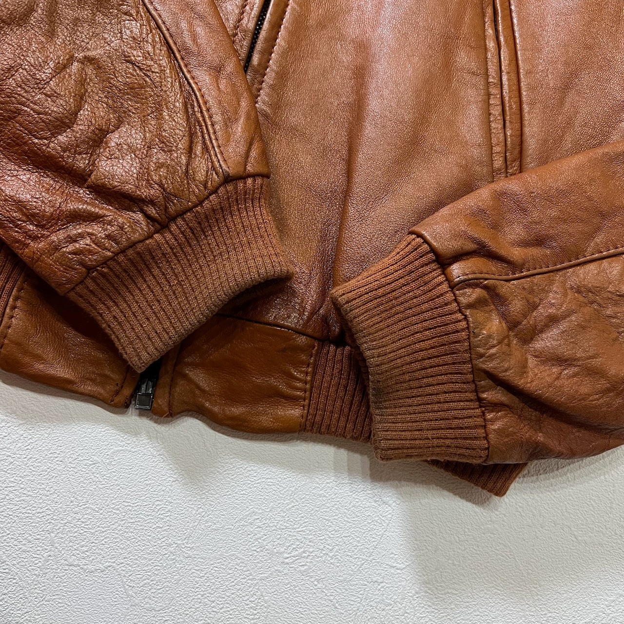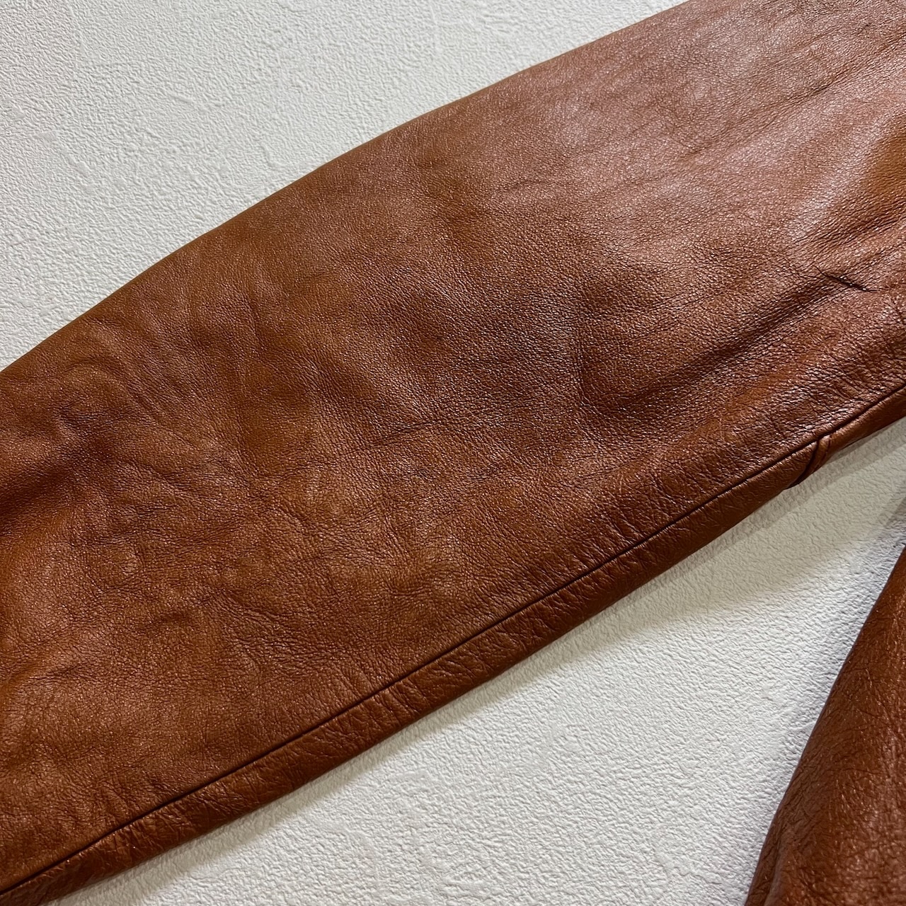 80s レザージャケット ノーカラー キルティングパッド ライトブラウン S 古着