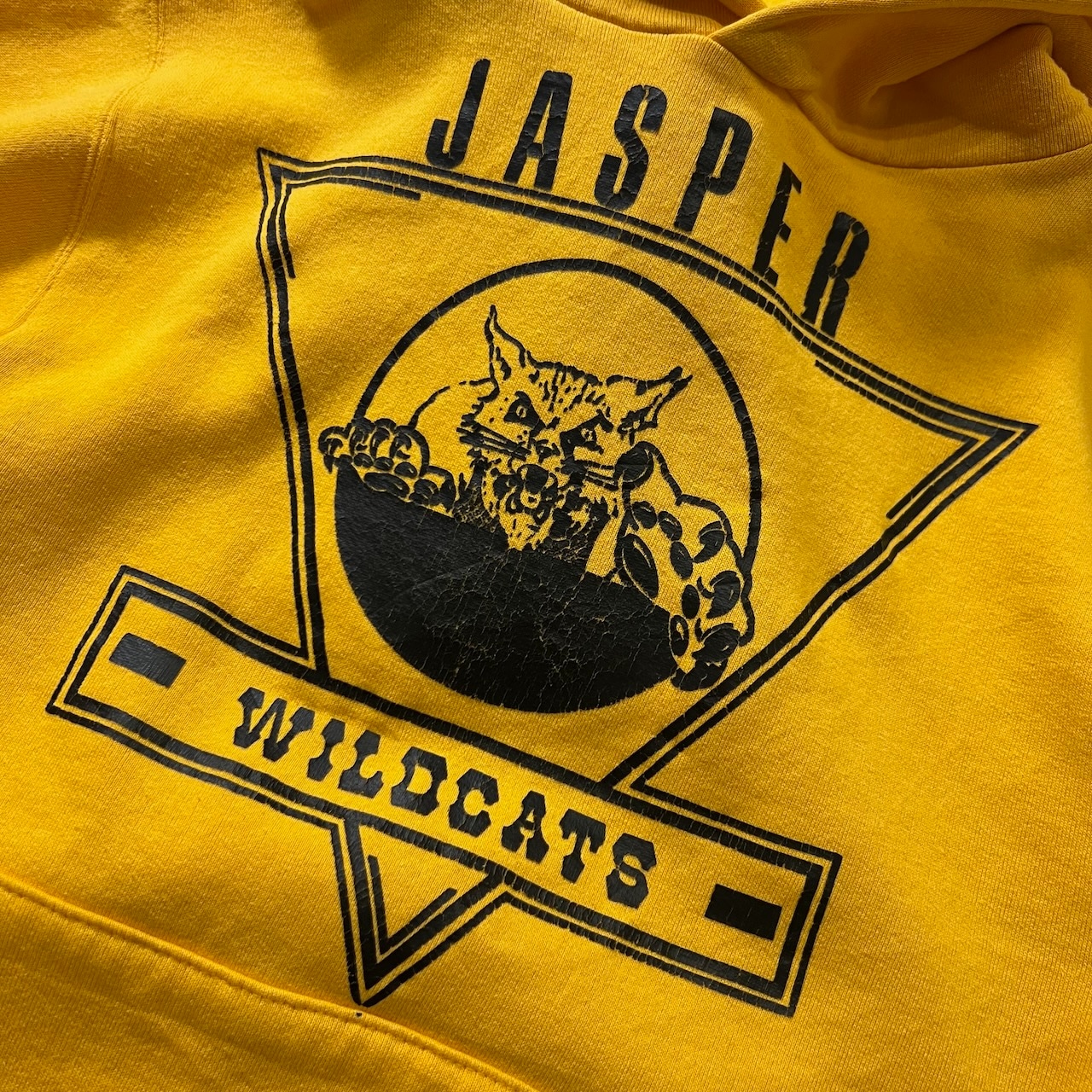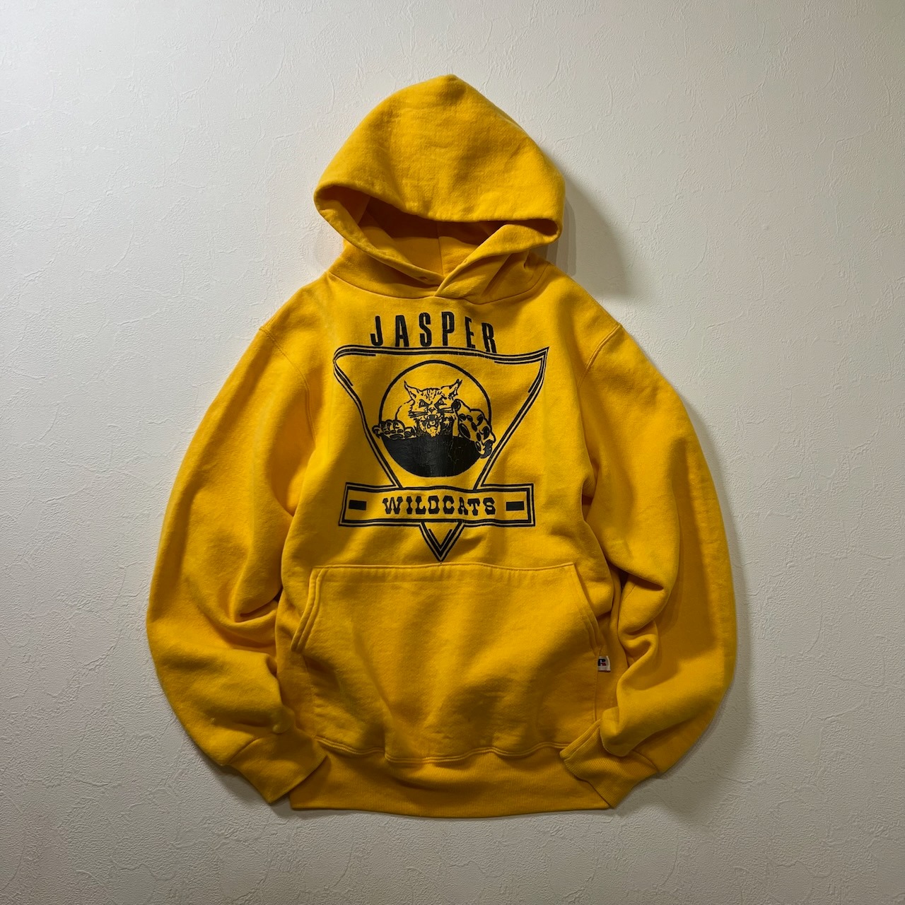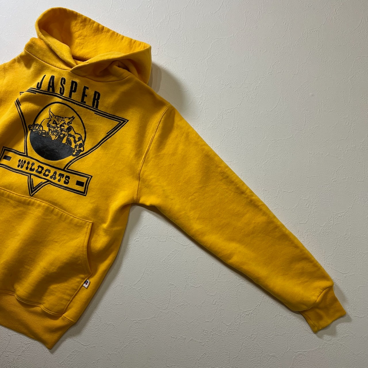 90s USA RUSSEL カレッジチームプリント プルオーバー フーディー ラッセル イエロー S 古着