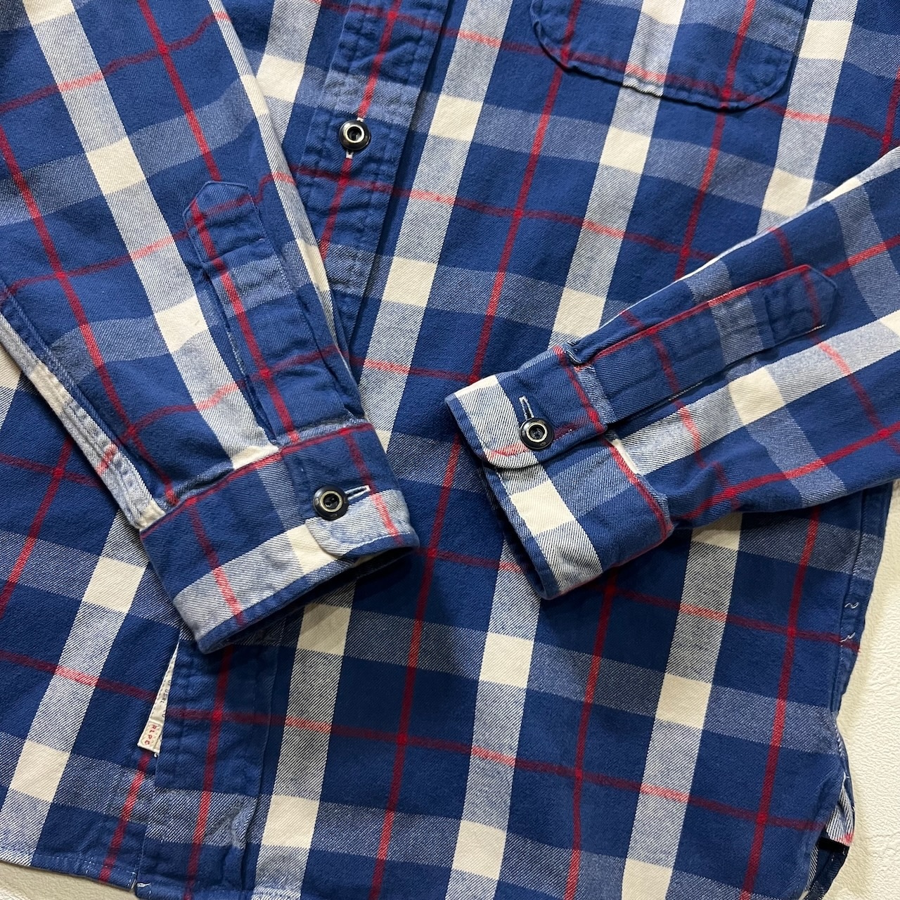 90s Ralph Lauren チンスト メタルボタン マチ付き ワーク 長袖シャツ ラルフローレン M ブルー 古着