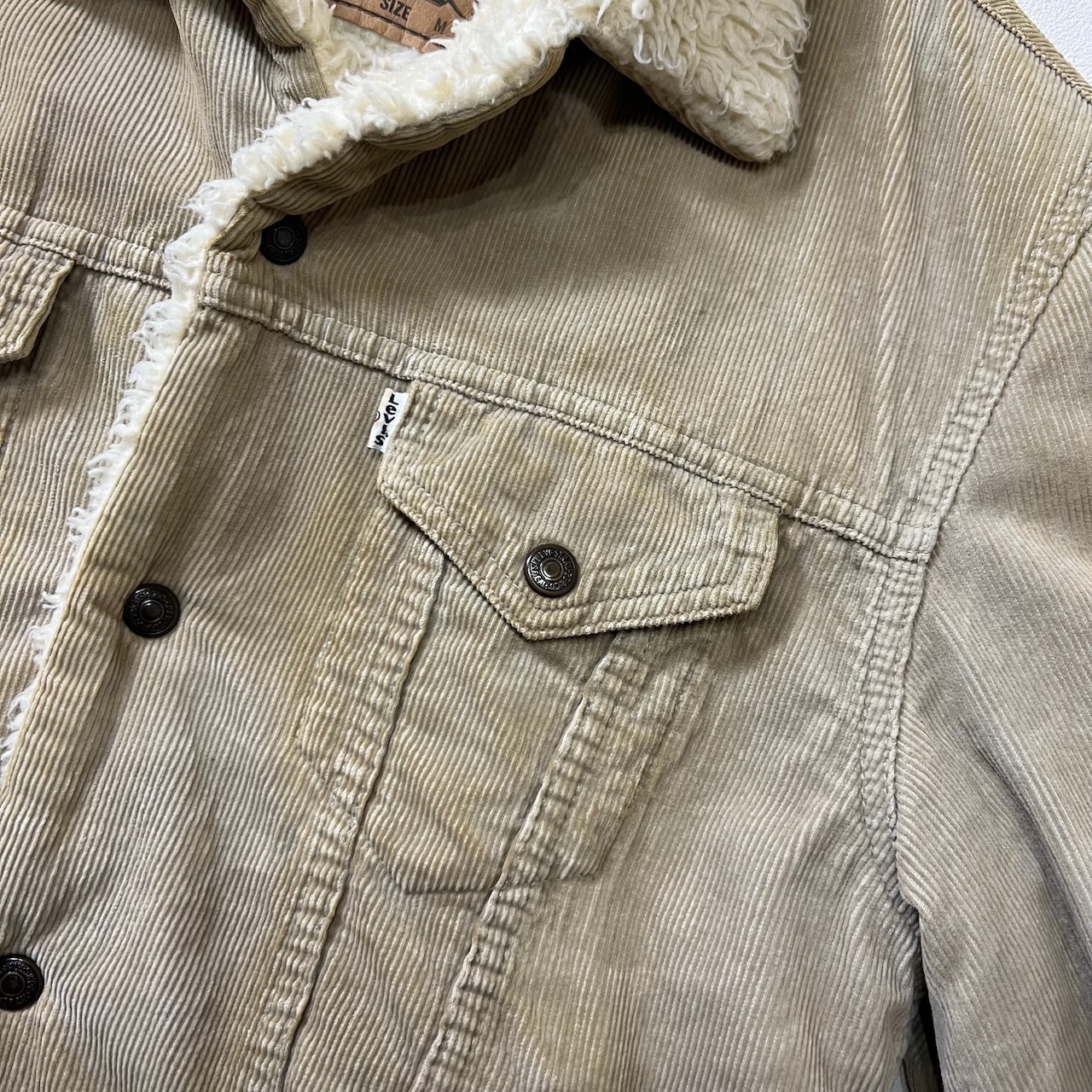 90s EURO Levi's 71500 コーデュロイ ボア襟 フェード コーズジャケット リーバイス ベージュ M 古着