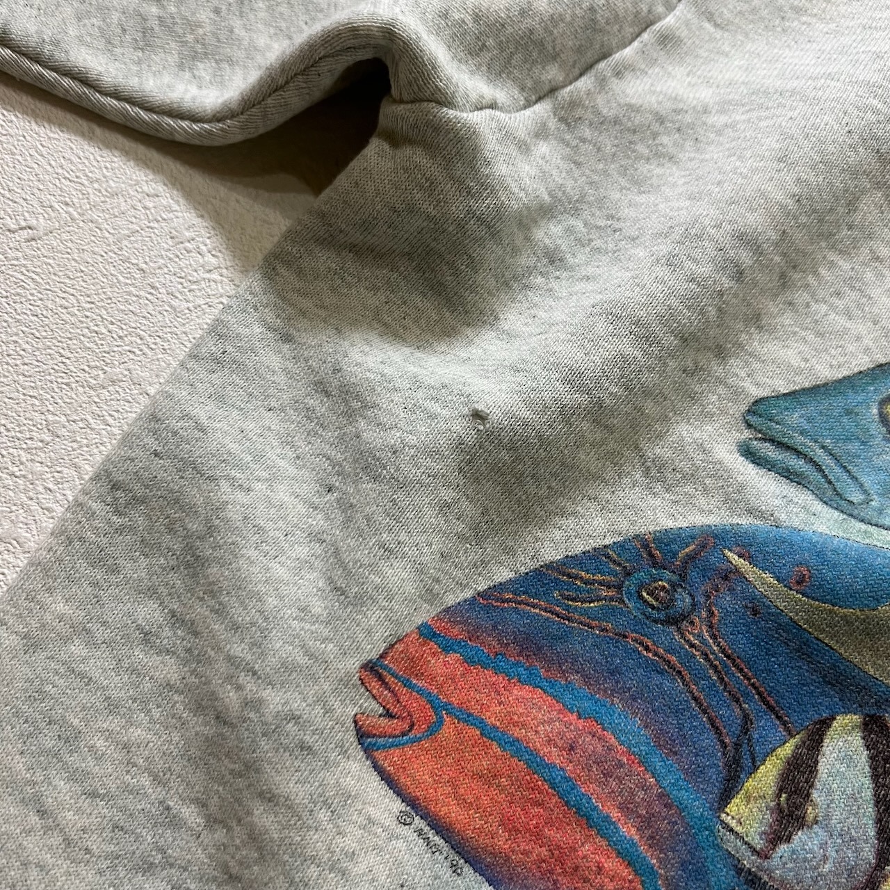 90s USA FRUIT OF THE LOOM 魚 トレーナー プルオーバー スウェット 霜降りグレー XL 古着