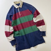 90s ST.JOHN'S BAY ボーダー ラガーシャツ プルオーバー 長袖シャツ セントジョンズベイ ネイビー グリーン ボルドー M 古着