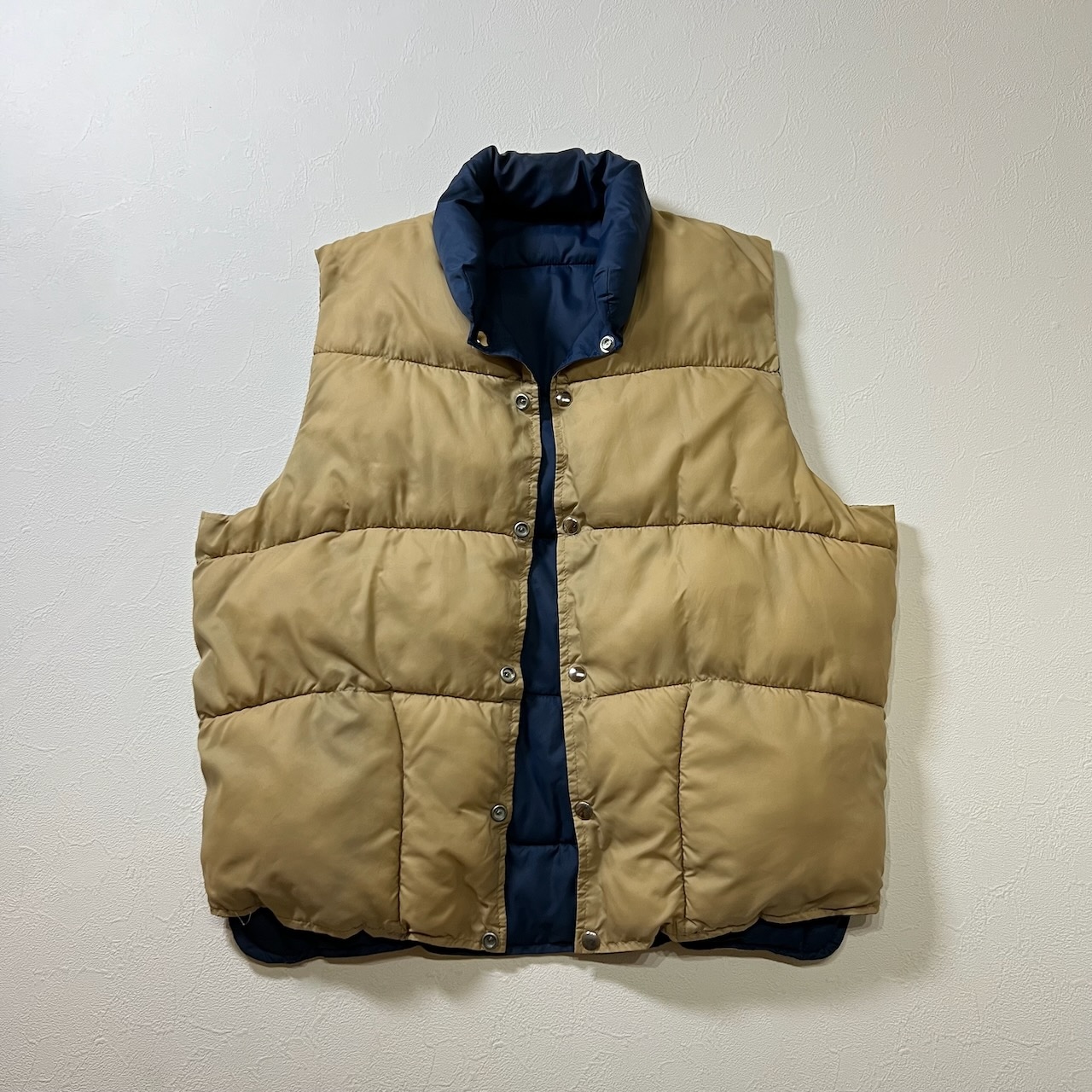 70s リバーシブル バイカラー ダウンベスト ネイビー ベージュ 古着