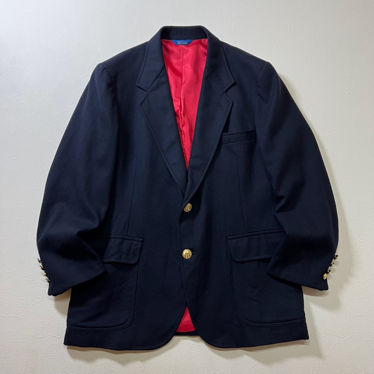 80s USA PENDLETON 金ボタン ウール テーラードジャケット ペンドルトン ネイビー 古着