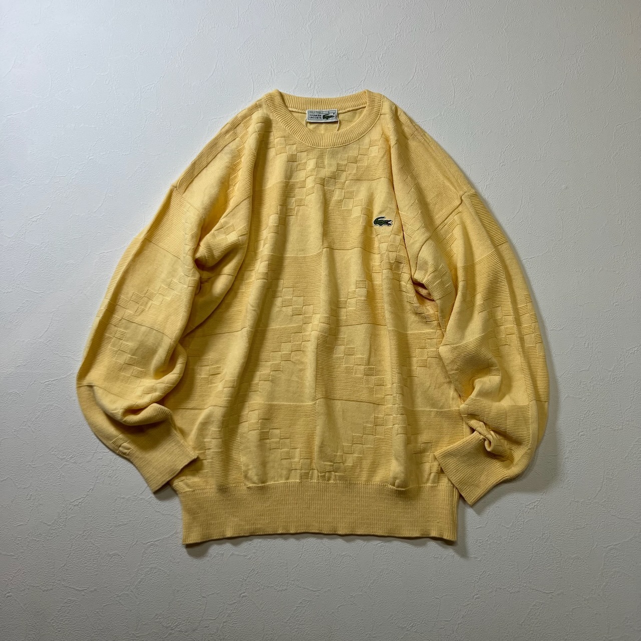80s FRANCE LACOSTE フレラコ 幾何学 コットン アクリル ニット セーター ラコステ ライトイエロー 5 古着