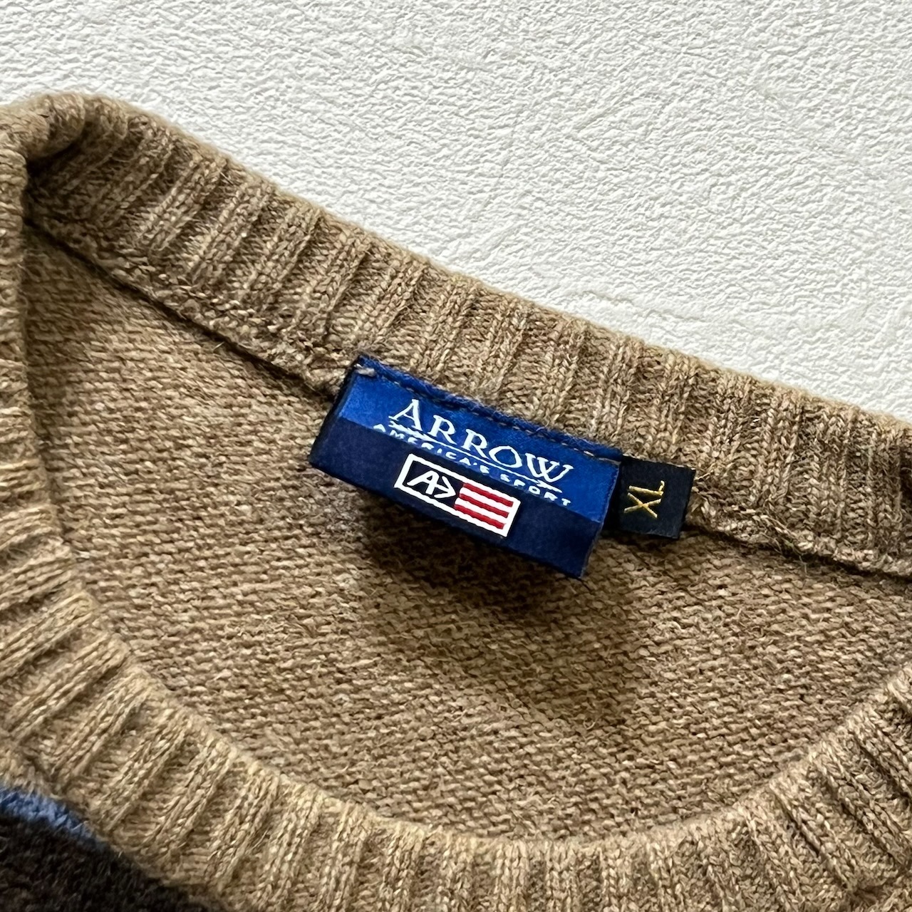 EURO ARROW ボーダー ウール ニット プルオーバー アロー ブラウン XL 古着