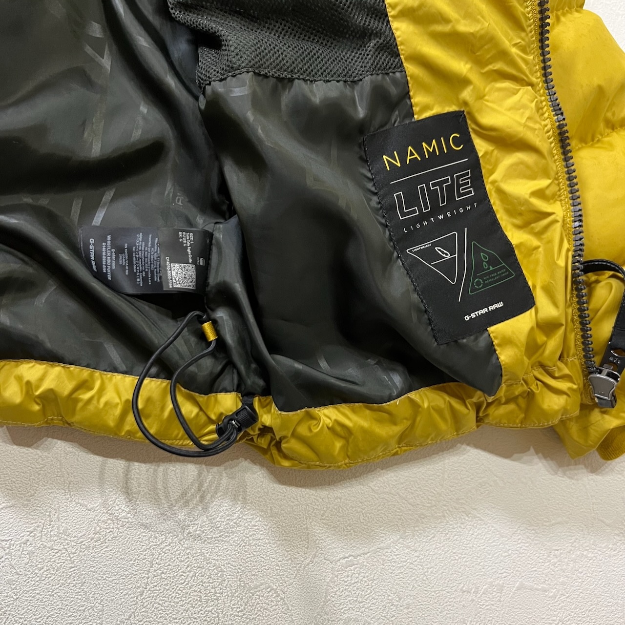 ちなみにダウンではなく、リサイクルポリエステル原料の撥水加工を施された薄手の生地、NamicLiteが採用されています。