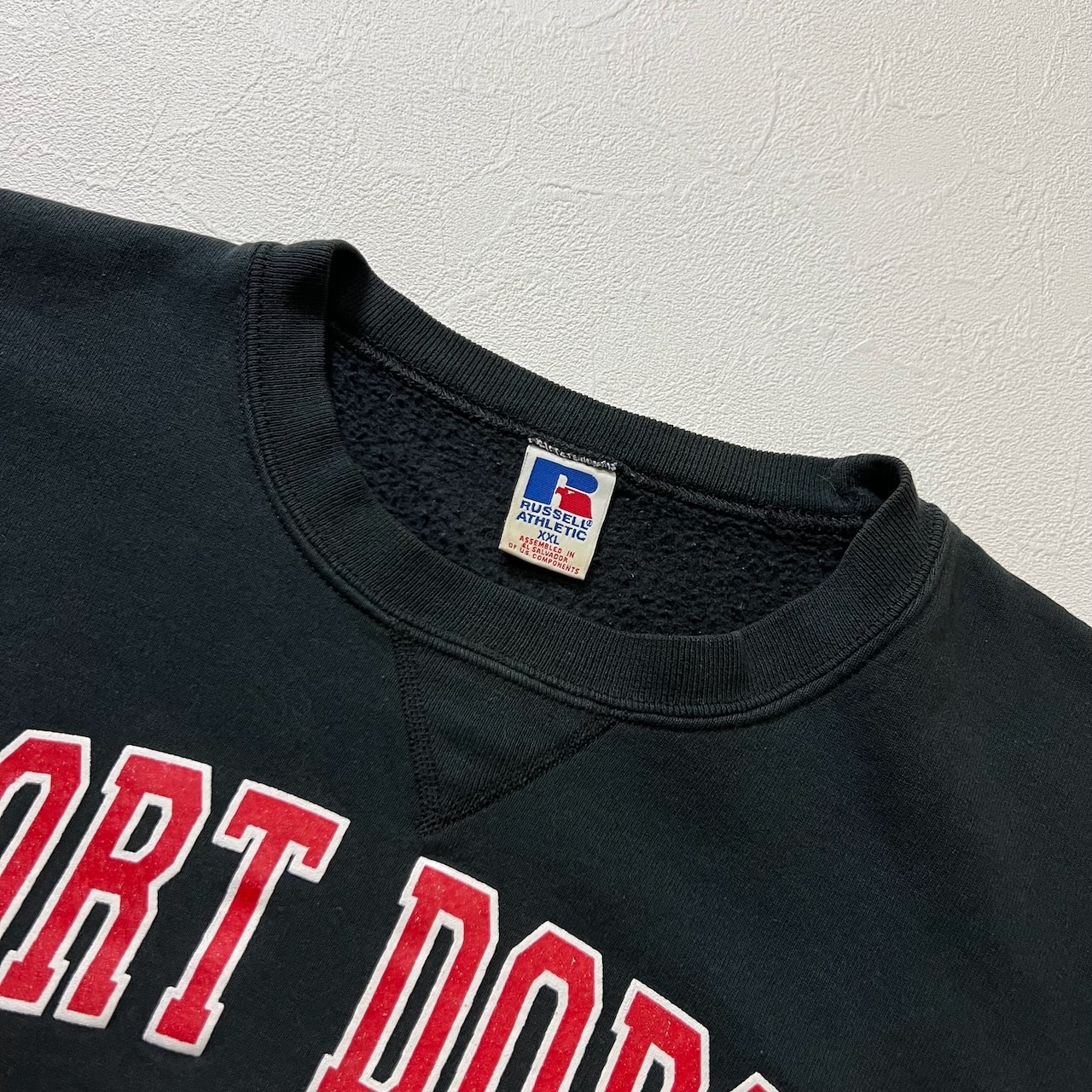 90s RUSSELL 3段ロゴ スポーツチーム スウェット トレーナー ラッセル ブラック XXL 古着