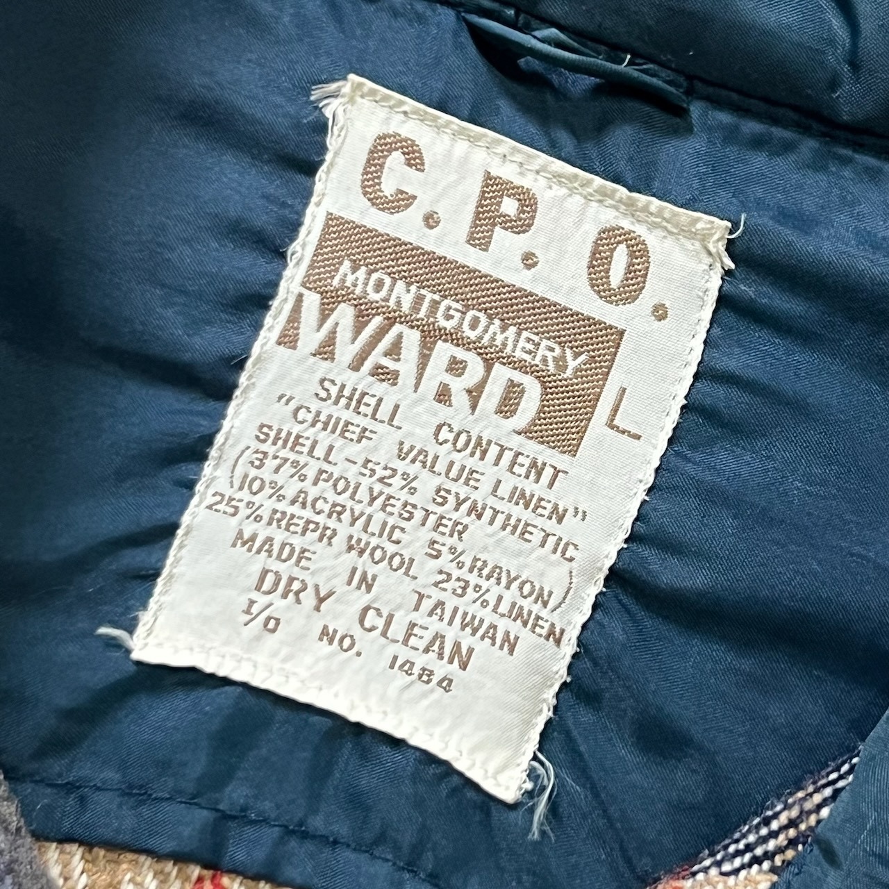 70s Montgomery Ward CPO チェック ウール混 長袖シャツ モンゴメリーワード レッド ネイビー L 古着
