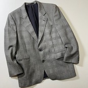 80s〜 england Aquascutum グレンチェック ウール テーラードジャケット アクアスキュータム グレー S 古着