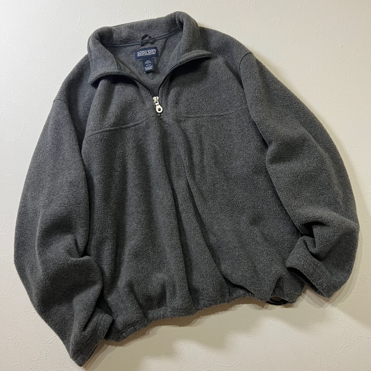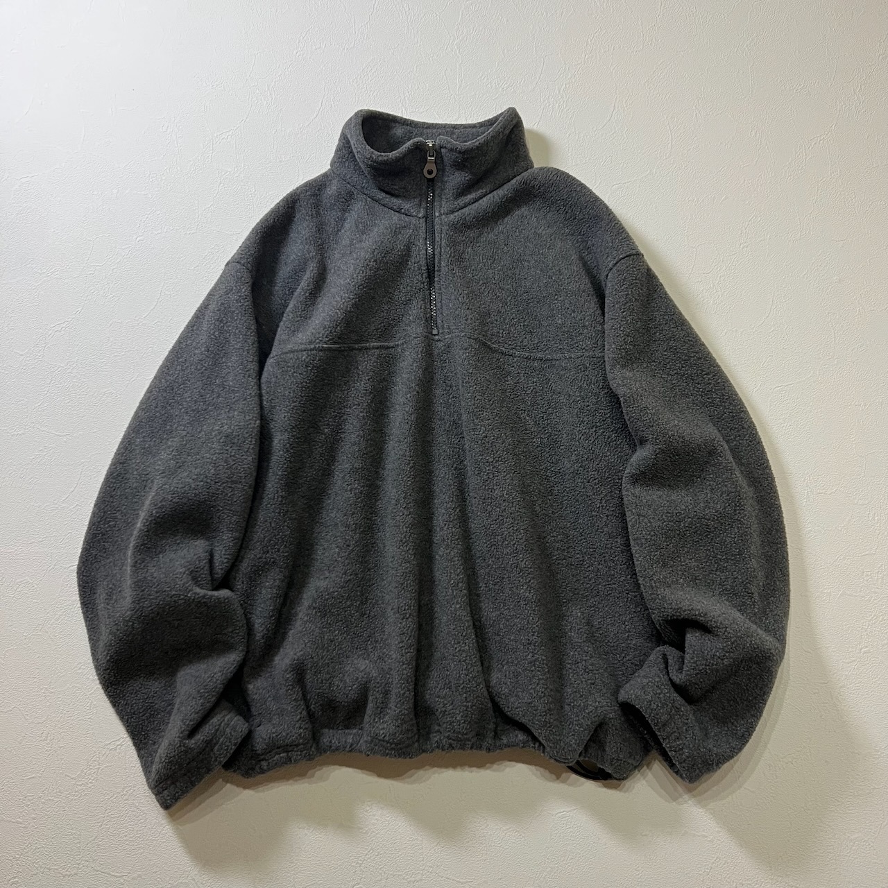 90s USA LANDS’ END ハーフジップ ドローコード フリース ランズエンド グレー L 古着