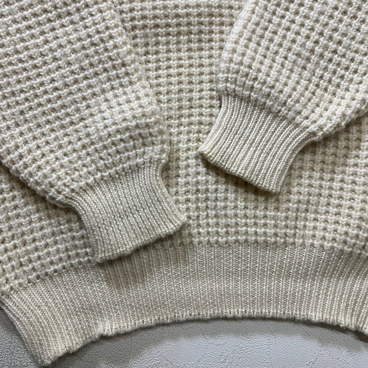 ざっくり編まれた肉厚なワッフル編みのニット。冬らしさ全開のアイテムで。