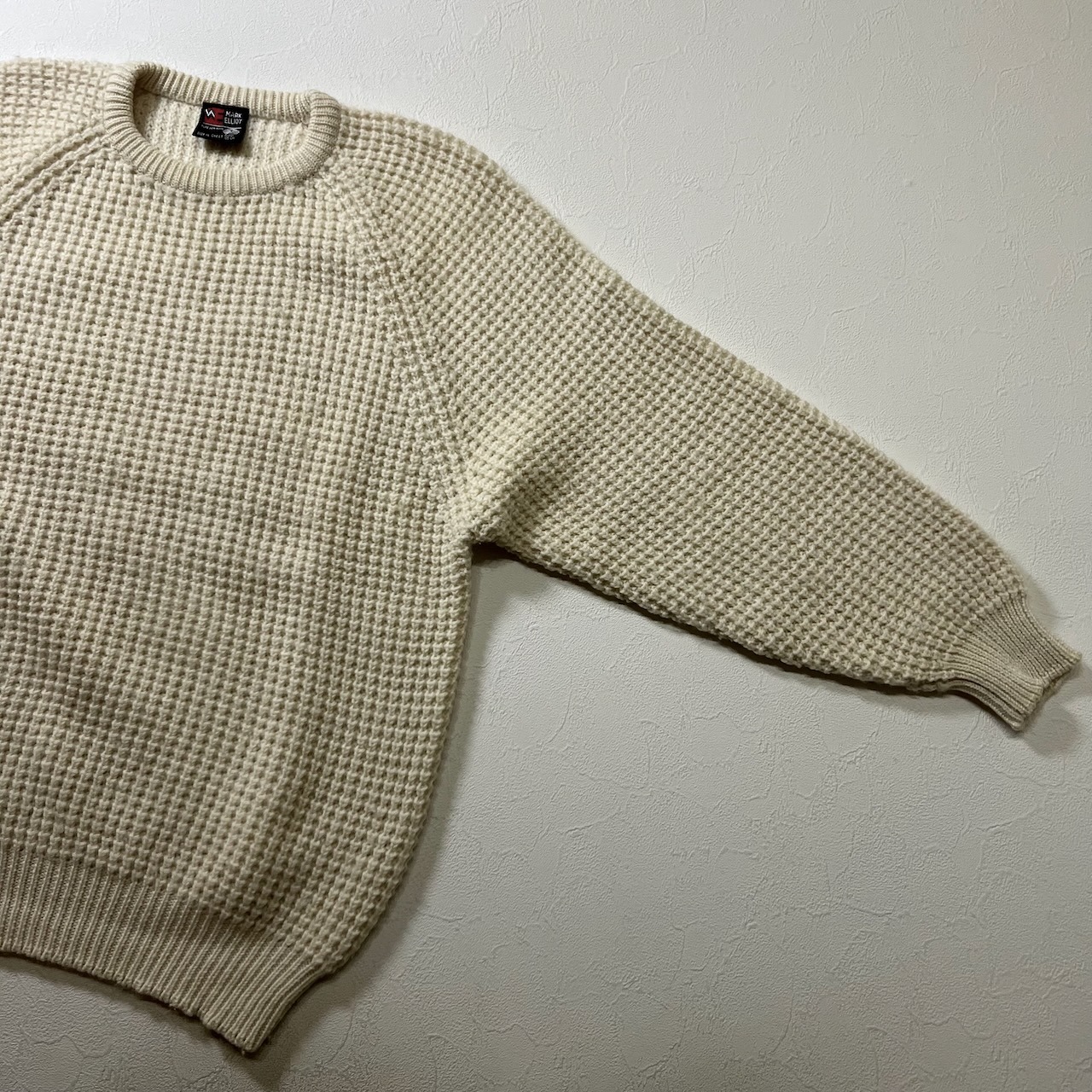 ニット ウール ワッフル編み ラグラン セーター アイボリー XL 古着