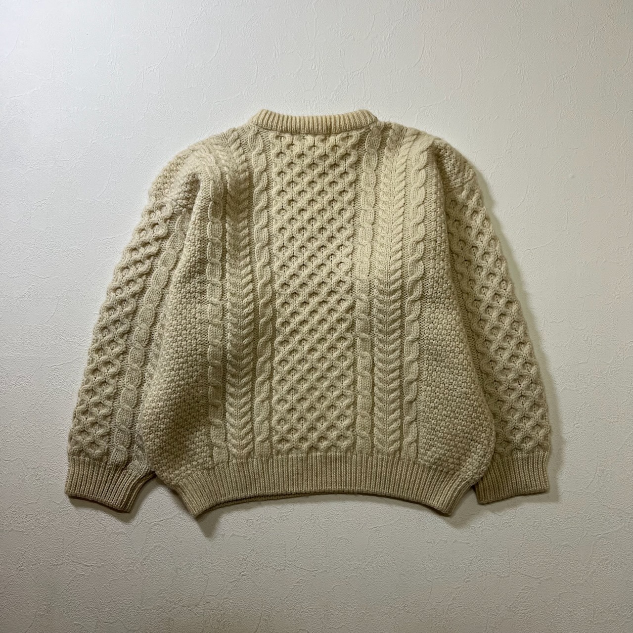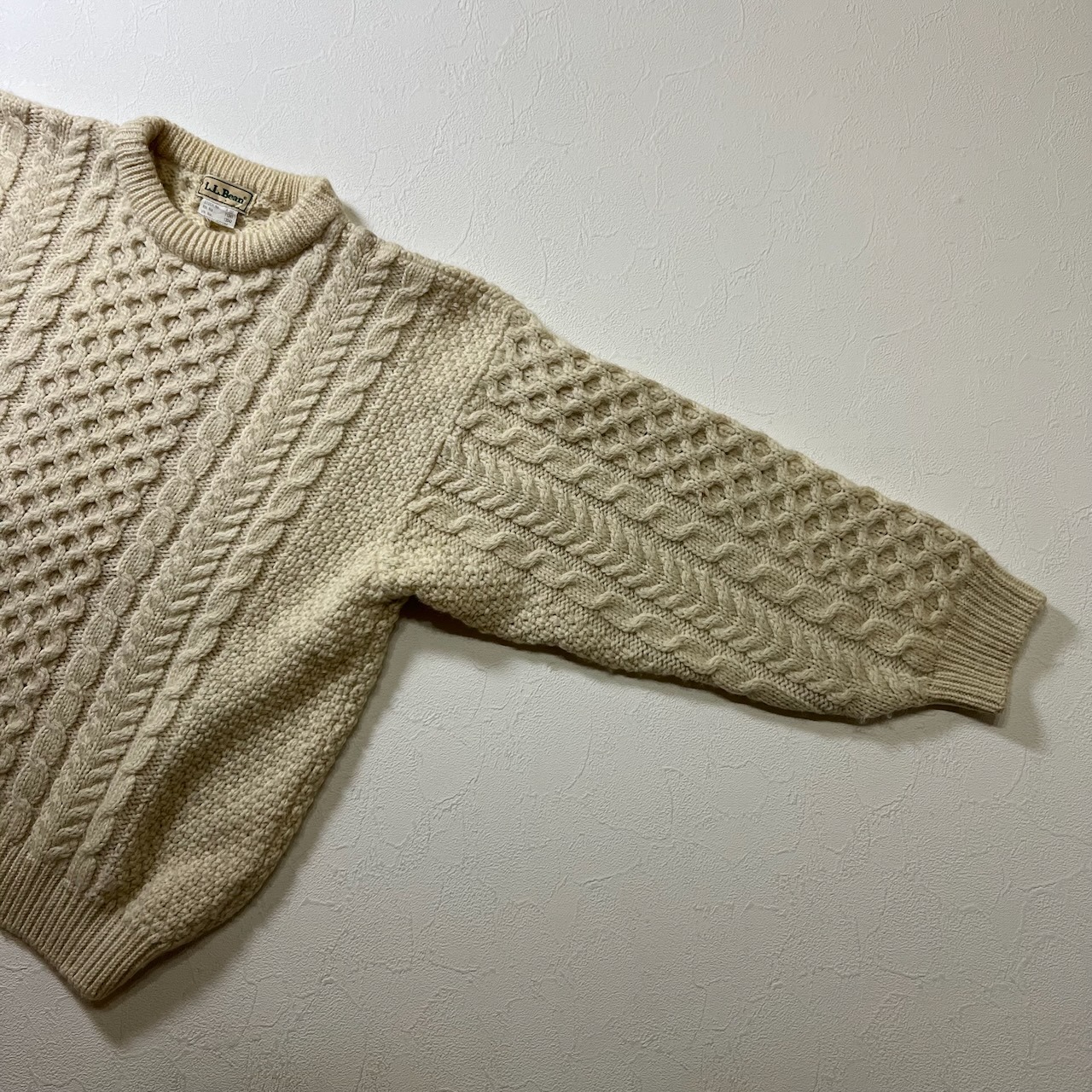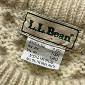 80s Ireland L.L.Bean アランセーター ウール ハニカム ケーブル ニット エルエルビーン アイボリー M 古着