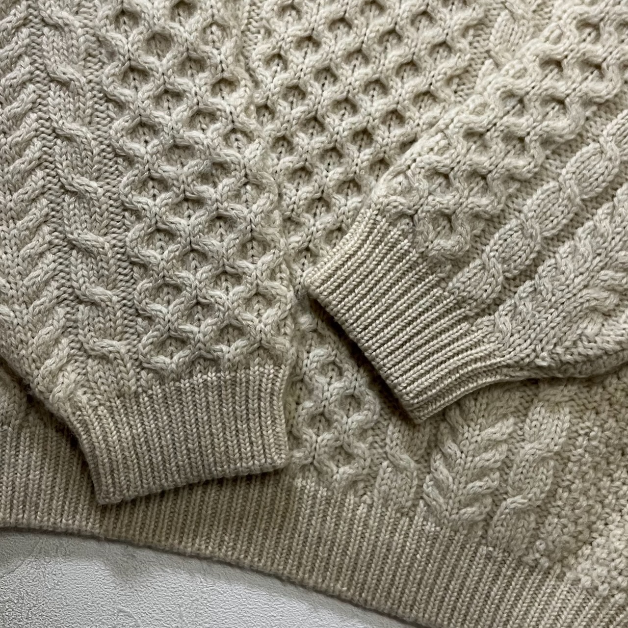 複数の編み柄を組み合わせた王道ですが、贅沢なパターンがいい表情を浮かべています。