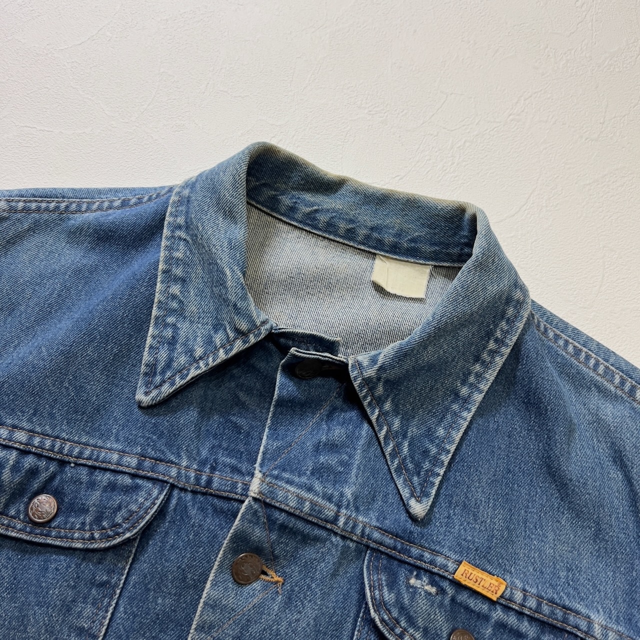 70~80s RUSTLER Wrangler エイジング デニムジャケット ラスラー ブルー 古着