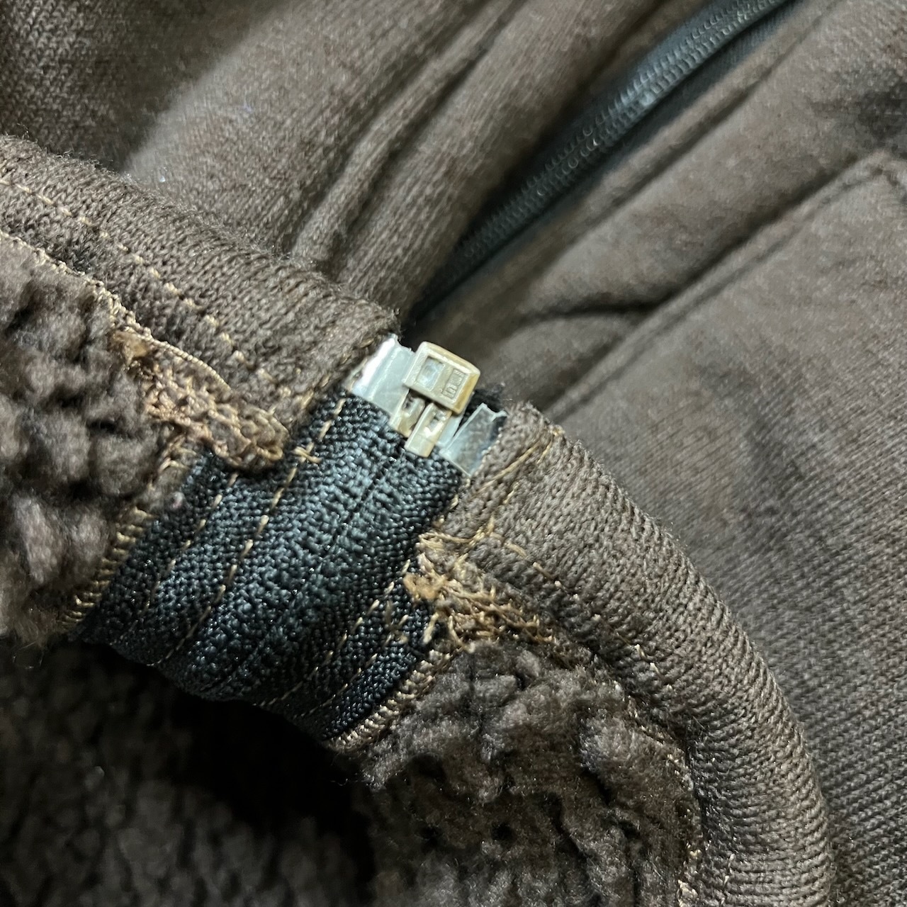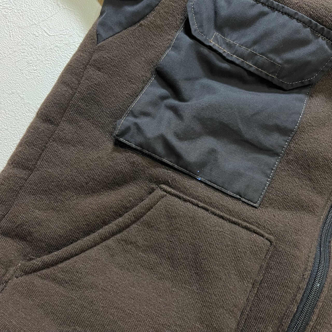 【 追記 】 : 全体的に毛玉・エンドテープ剥がれ・左袖、左ポケットに着色・左袖に汚れ・画像参照