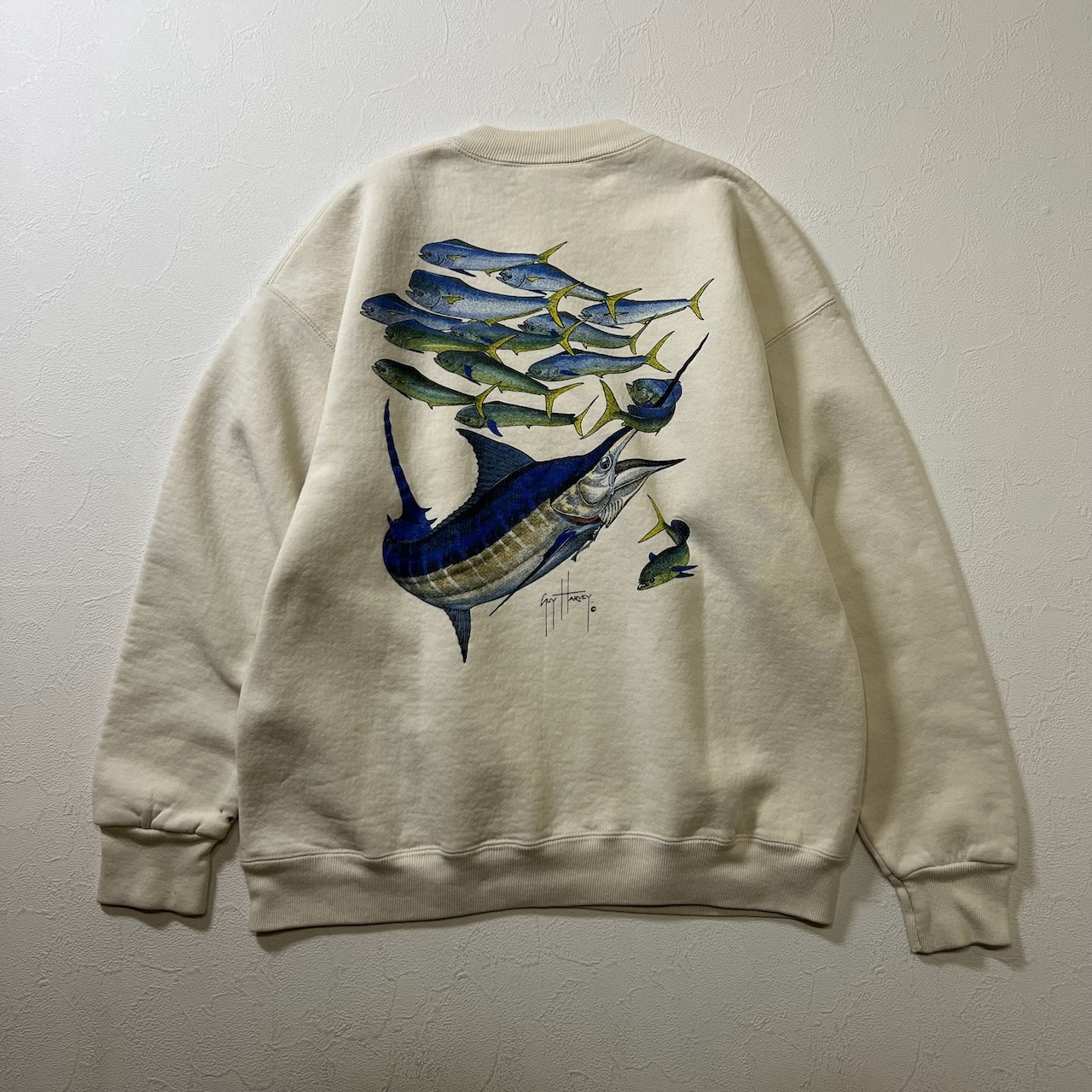 90s USA Lee ガイ・ハーベイ 魚 アートプリント 両面プリント スウェット リー アイボリー XL 古着