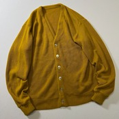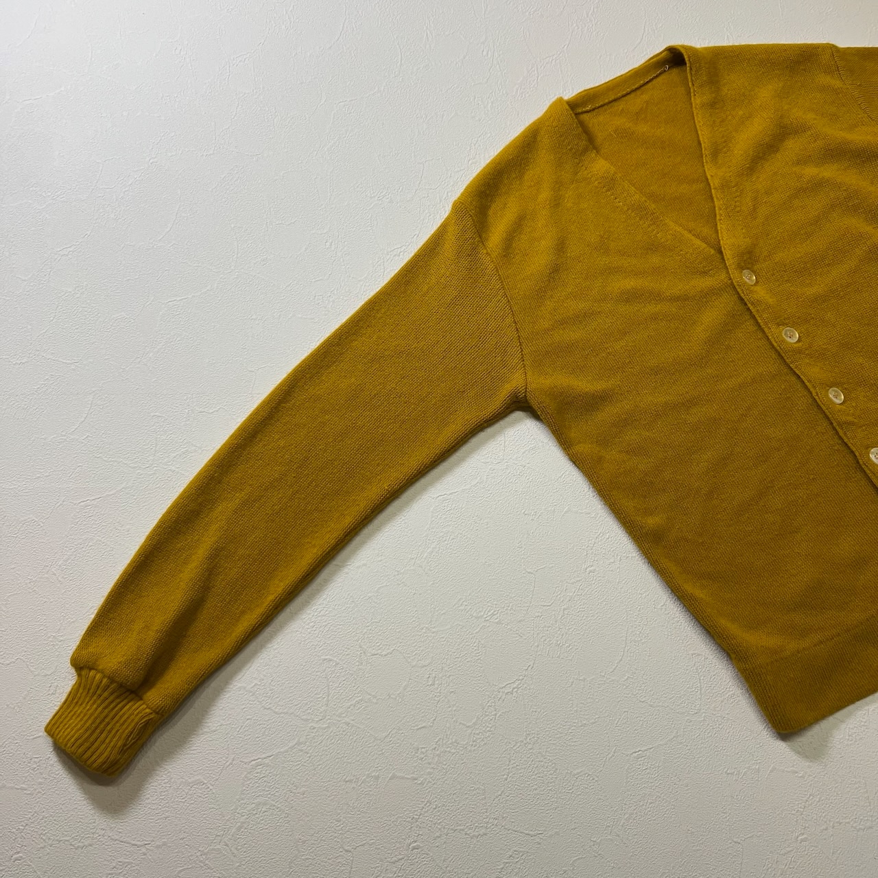 60s アクリル シェルボタン カーディガン マスタードイエロー 古着