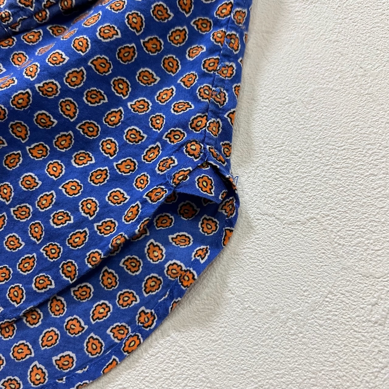 90s Ralph Lauren BD 花柄 総柄 マチ付き 長袖シャツ ラルフローレン ブルー M 古着