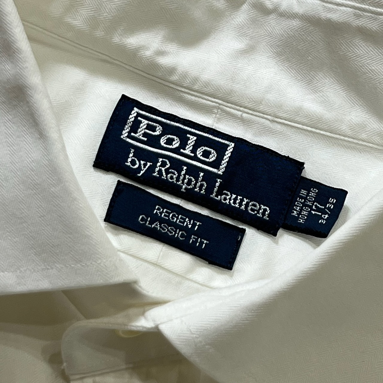 90s~ Ralph Lauren REGENT CLASSIC FIT ポニー無し ワイドカラー 長袖シャツ ホワイト 17 古着