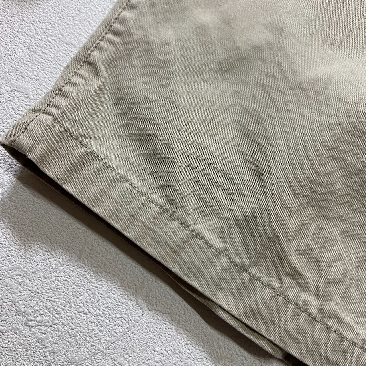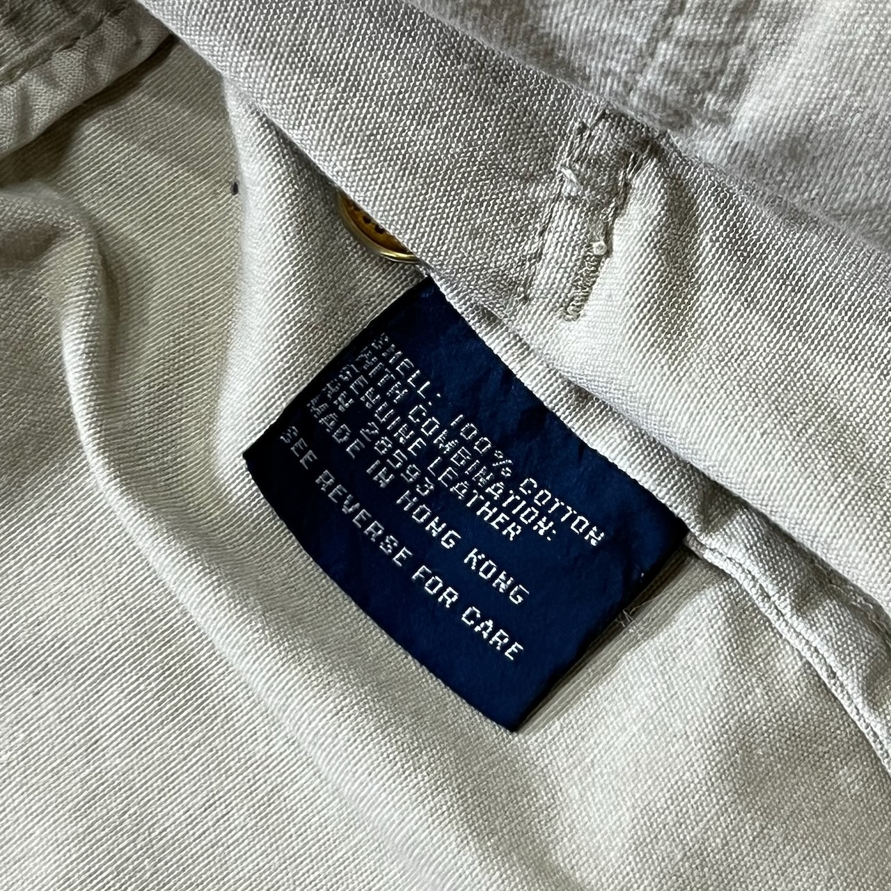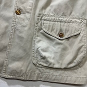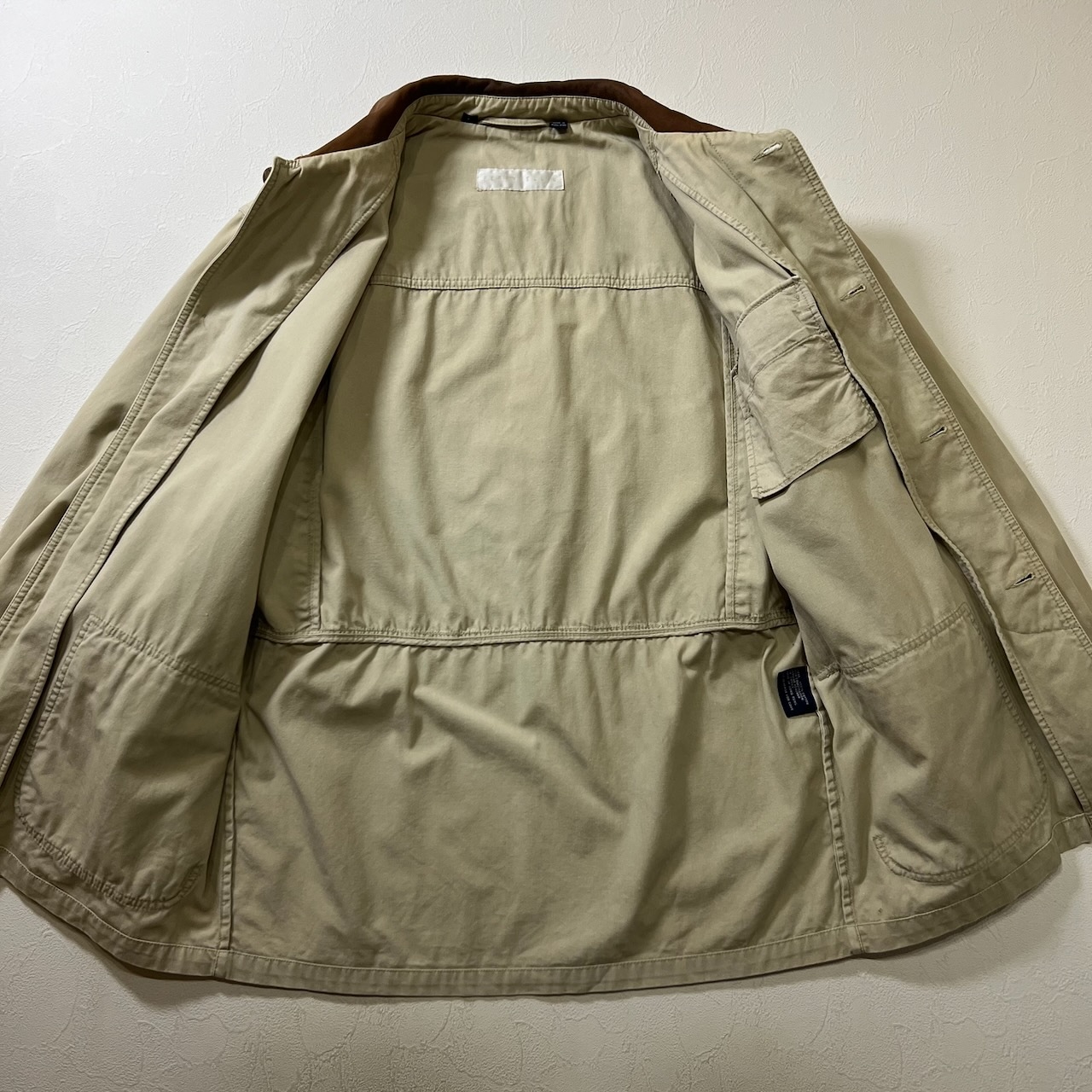 90s PERRY ELLIS 襟レザー ワークジャケット カバーオール ペリーエリス ライトベージュ L 古着