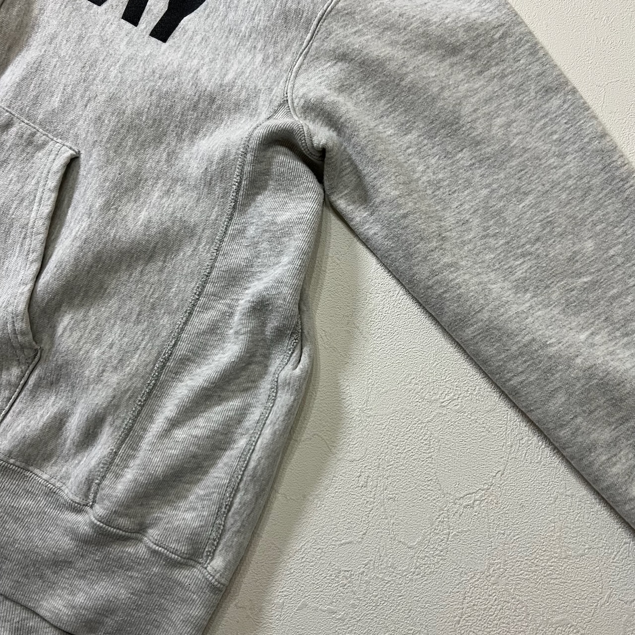 リバースウィーブ製法に加えて着丈短め、袖長め。サイズバランスも文句なし。