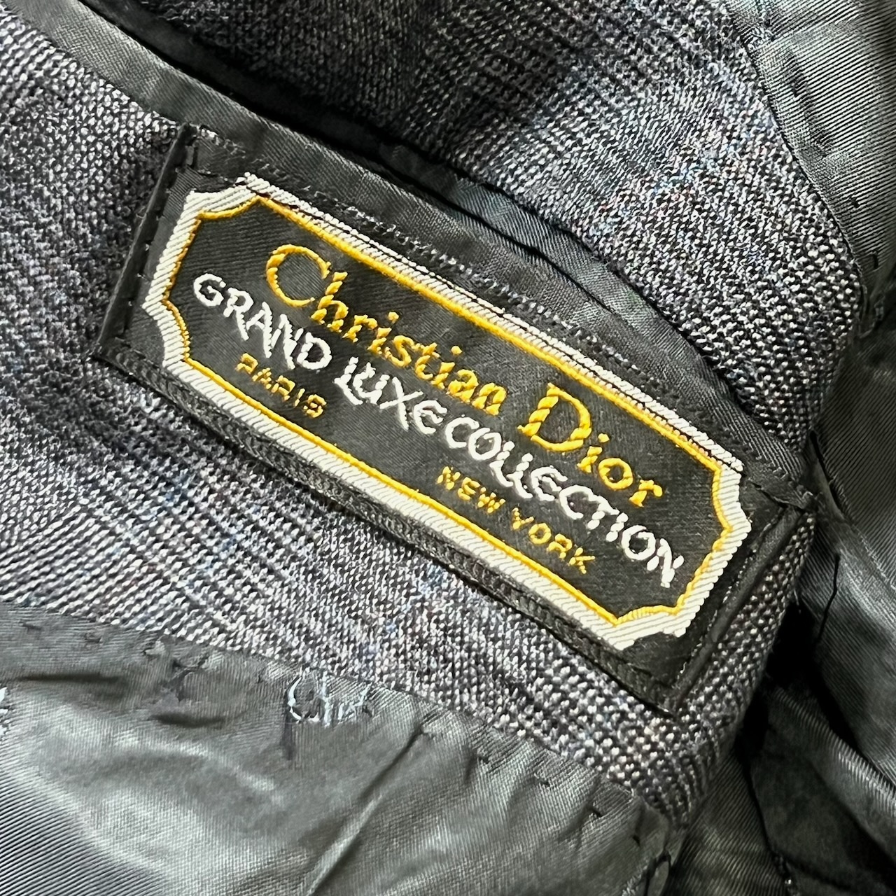 80s Dior グレンチェック テーラードジャケット ディオール チャコールグレー 古着