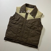 70s ナイロン バイカラー キルティングベスト ブラウン クリーム 古着