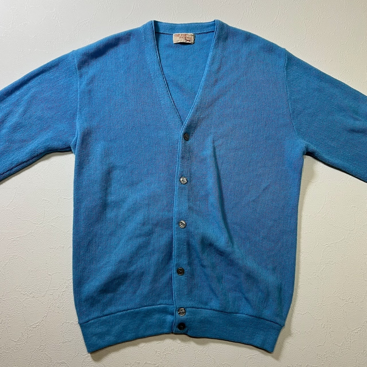 70s THE FOX JCPenney アクリル カーディガン ザフォックス ジェーシーペニー ライトブルー 古着