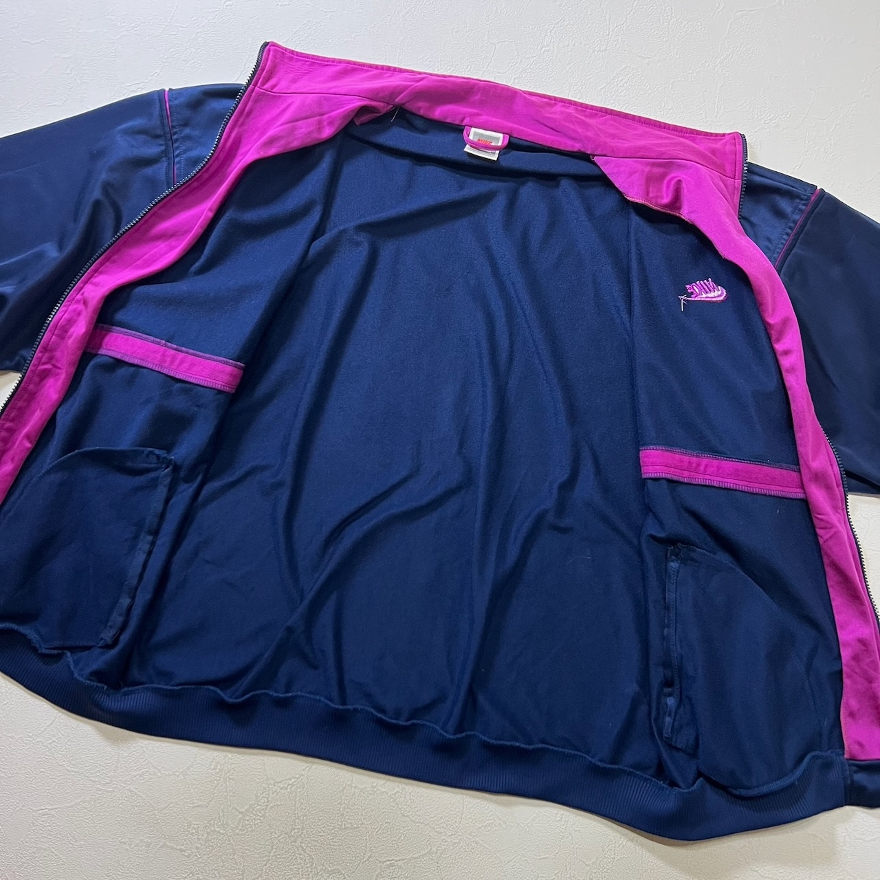 80~90s NIKE ジャージ トラックジャケット ナイキ ネイビー ピンクパープル XL 古着