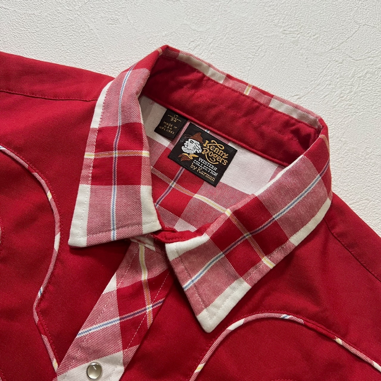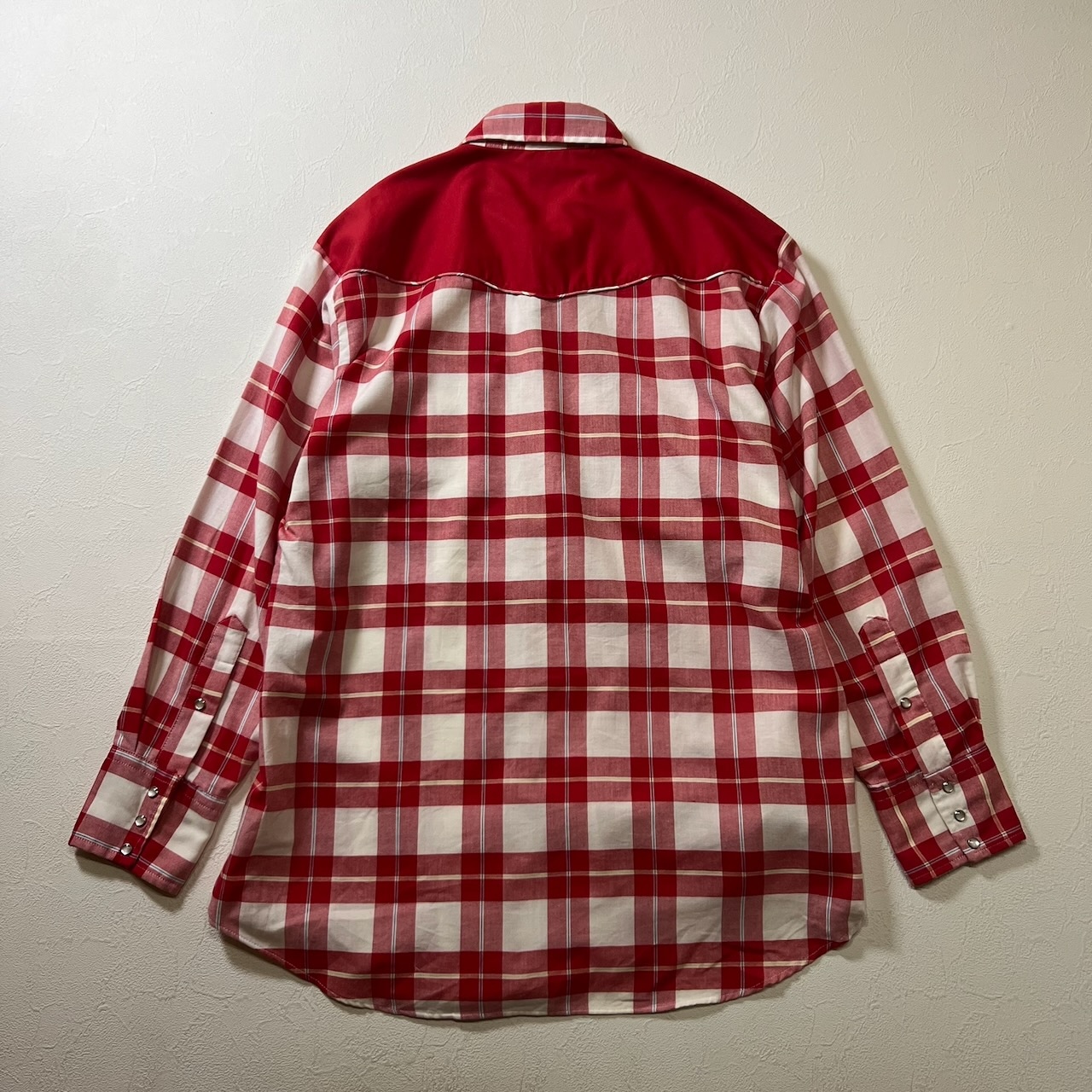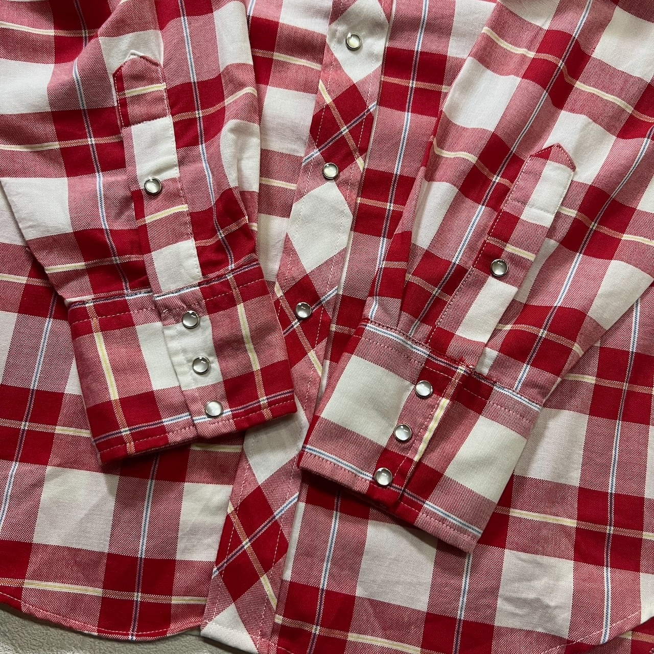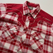 70〜80s USA 襟芯 スナップボタン チェック ウエスタン 長袖シャツ レッド ホワイト 17/34 古着