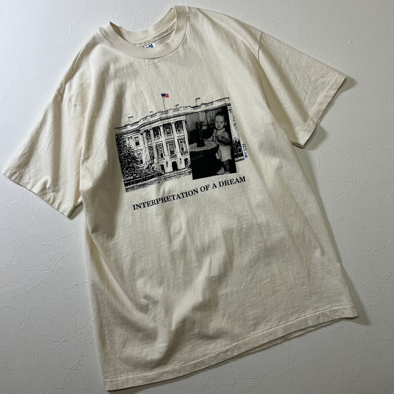 90s USA Hanes シングルステッチ ホワイトハウス メッセージ Tシャツ アイボリー L 古着