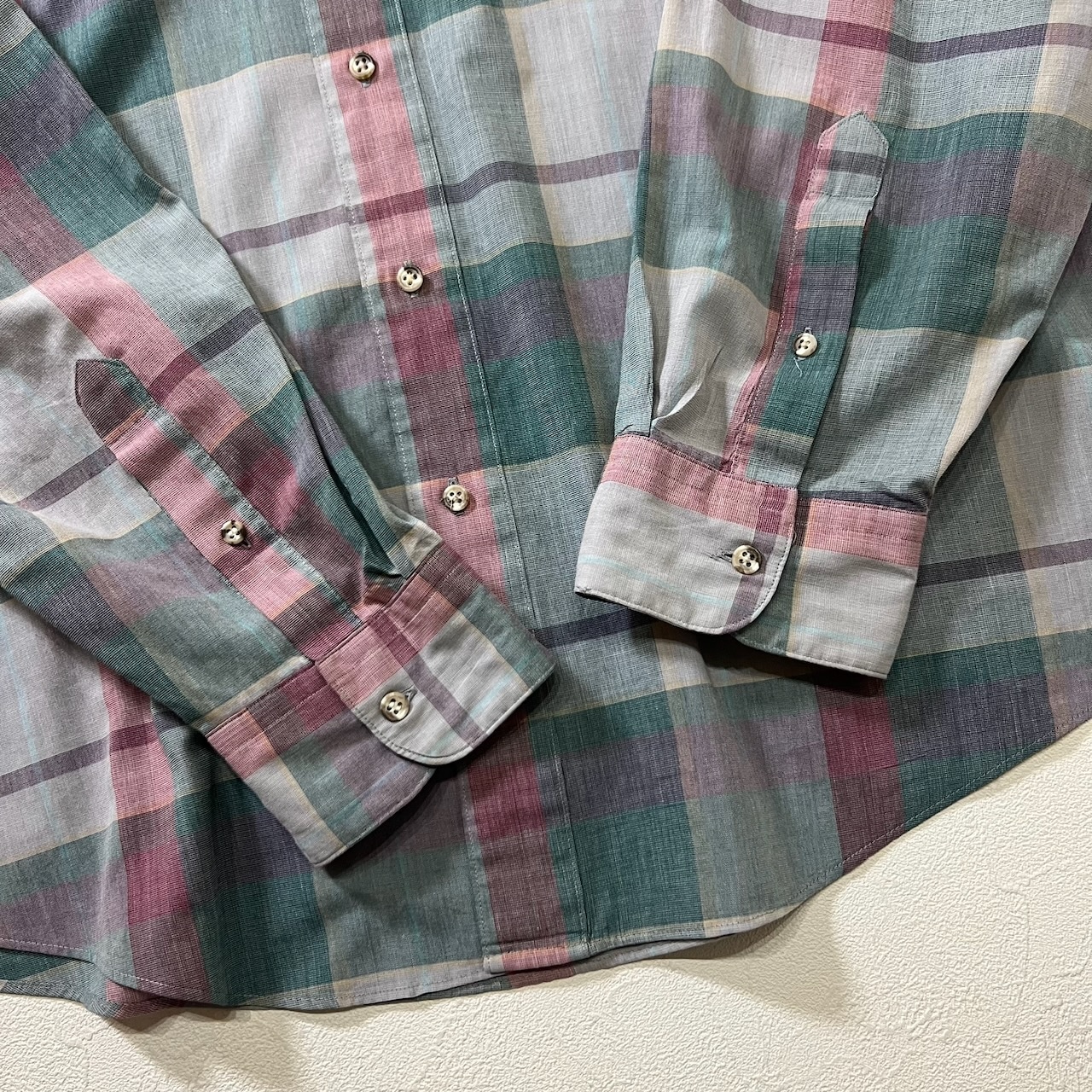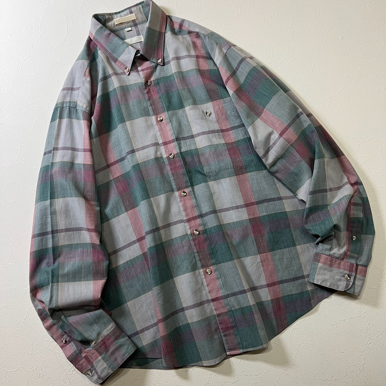 Dior チェック BD 長袖シャツ ディオール グリーンベース XL 古着