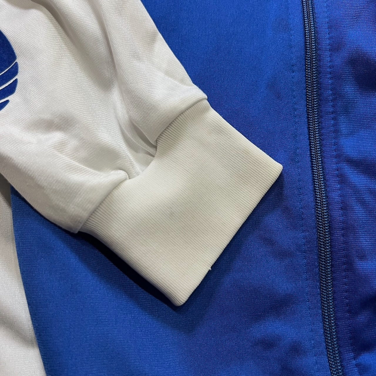 配色バランス◎だからこそ、袖上のトレフォイルロゴが光る。ちなみに袖上ロゴ部はフロッキー素材です。