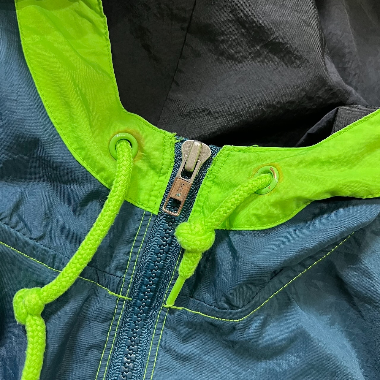 90s~ adidas ナイロン パフォーマンスロゴ スリーストライプ マルチカラー アノラックパーカー アディダス イエローグリーン ダークブルーグリーン M 古着