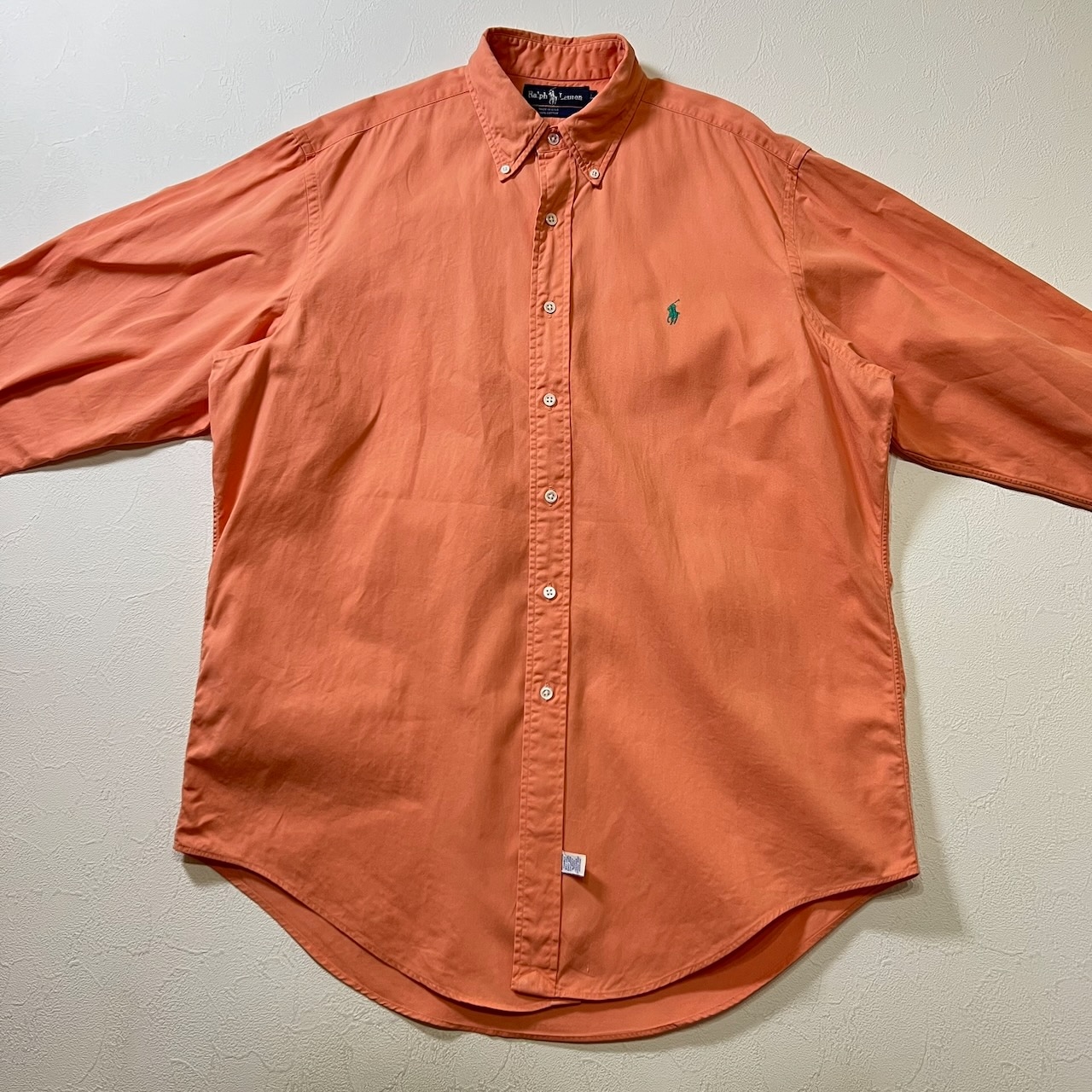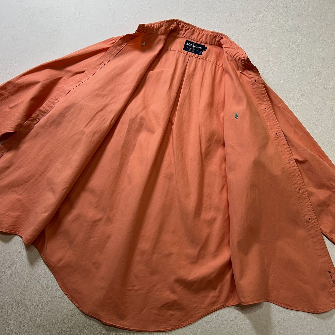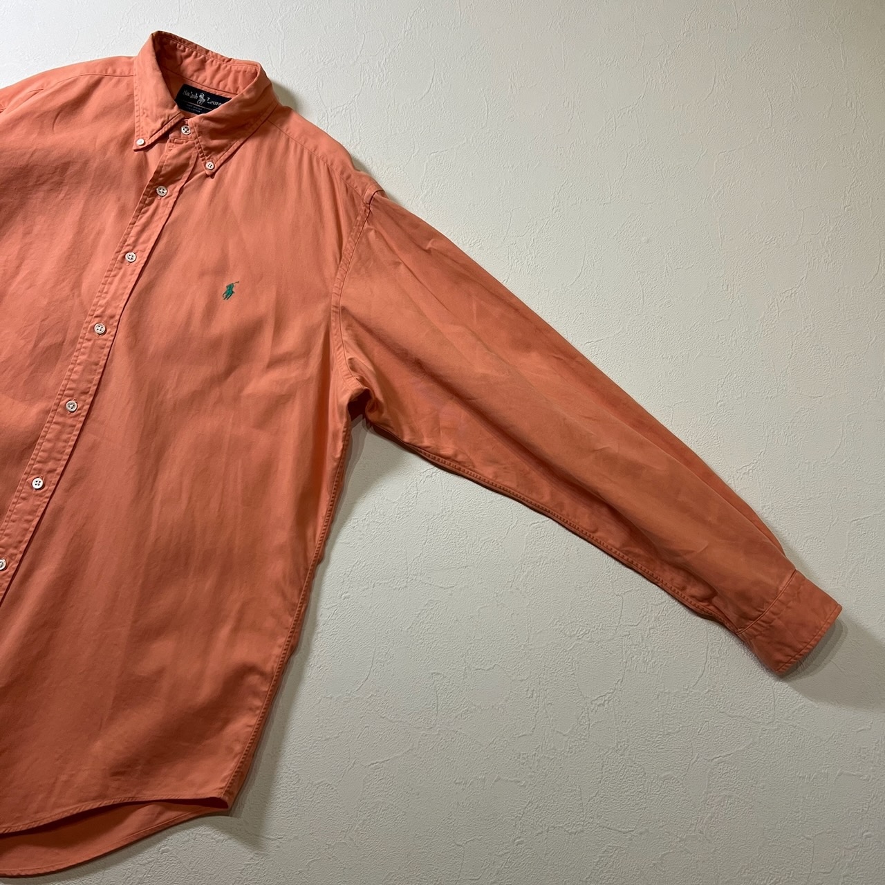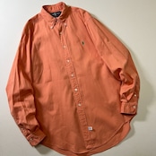 90s USA Ralph Lauren BD 無地 長袖シャツ ラルフローレン サーモンピンク L 古着