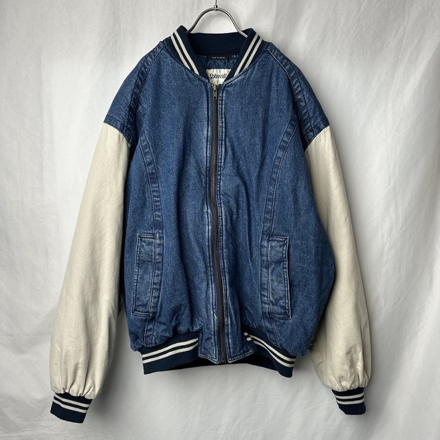 PUMA プーマ 厚手 コットン ブルゾン ジャケット Mサイズ オフホワイト ネイビー 古着