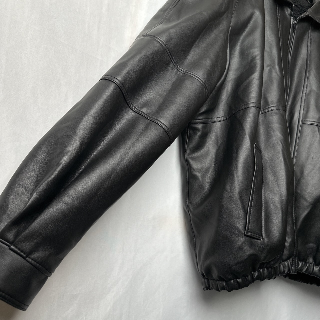 レザージャケット 裏地ボア 良シルエット シンプル 黒 古着