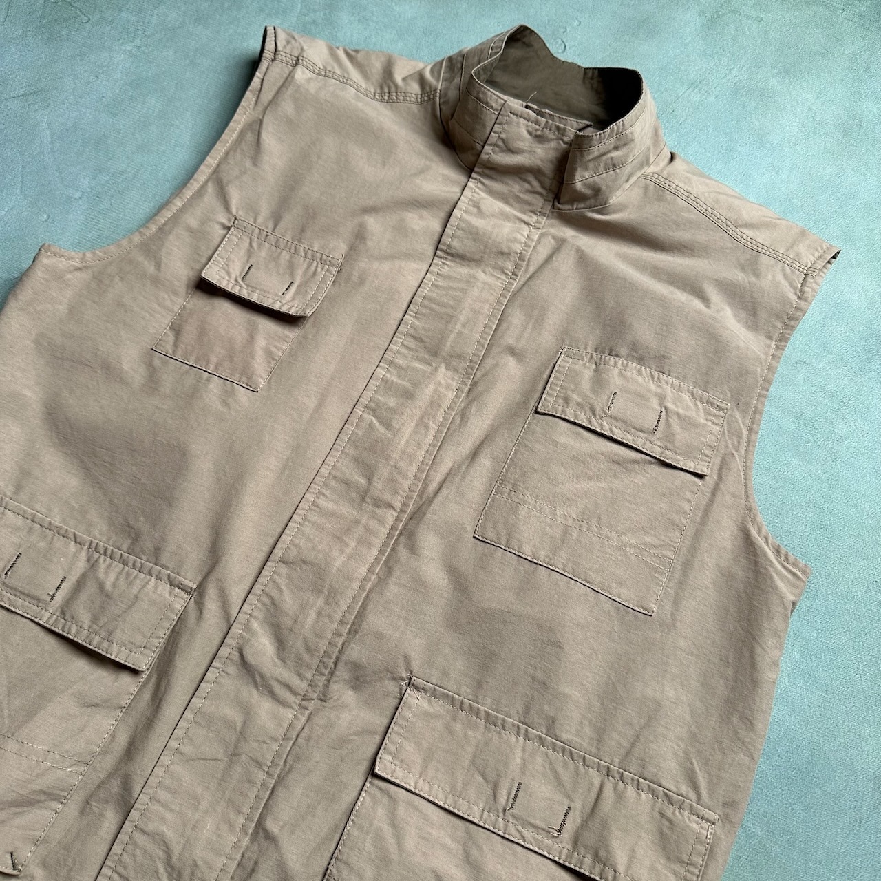 ハイネック フルジップ ドローコード付き ベスト コットンポリ ベージュ 古着